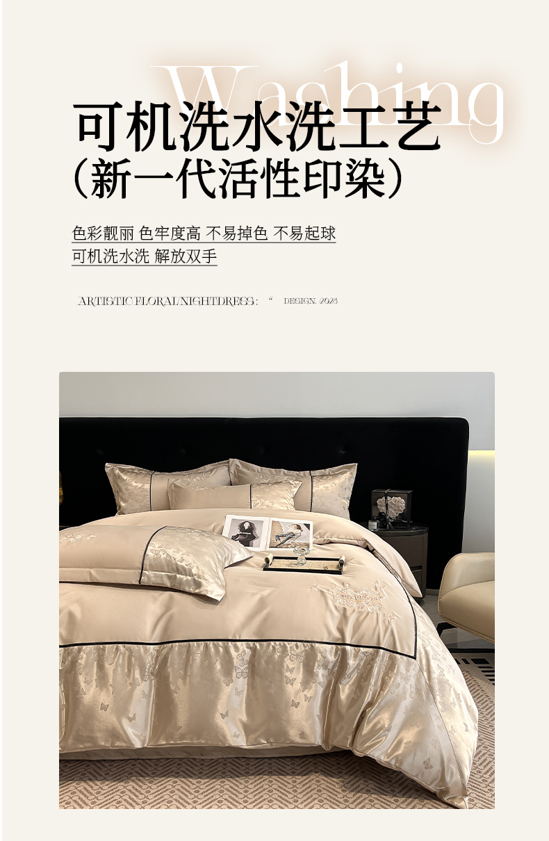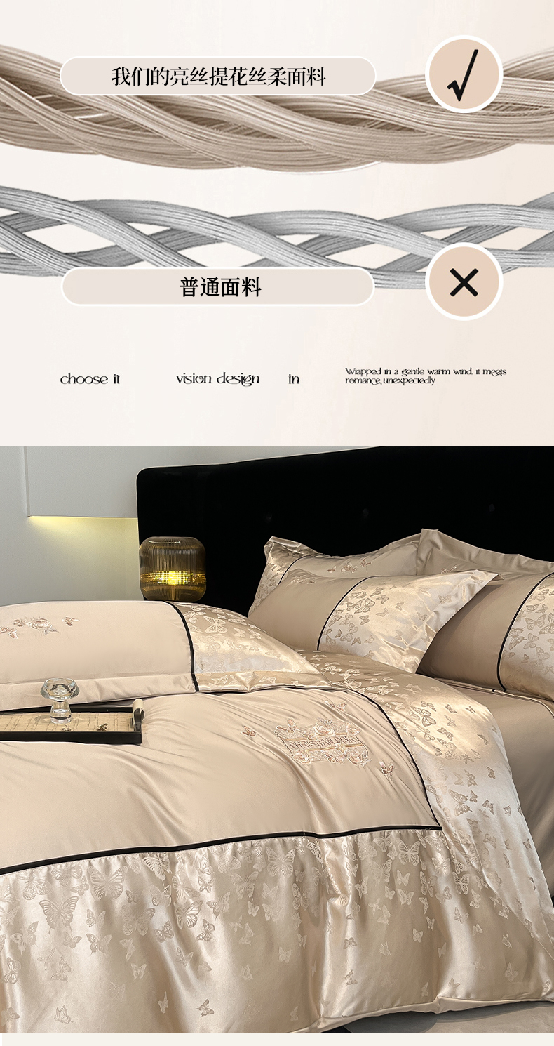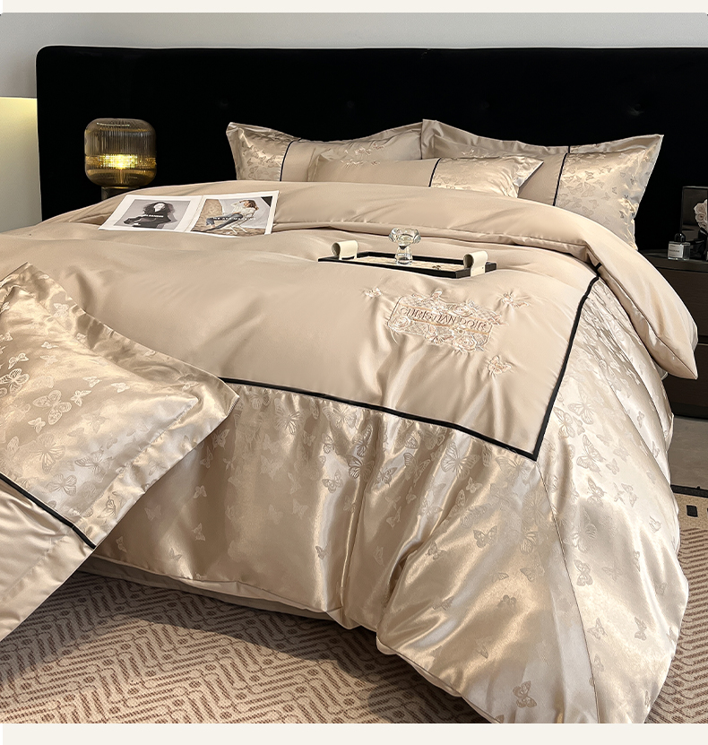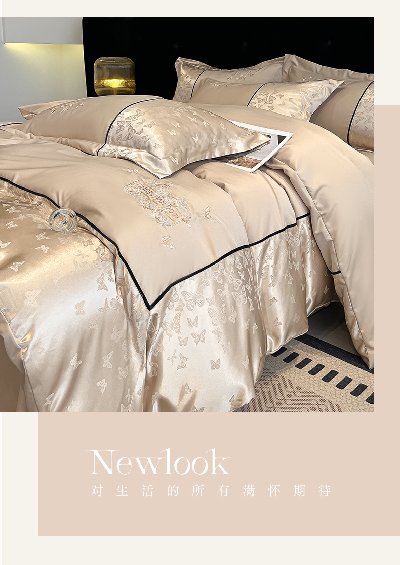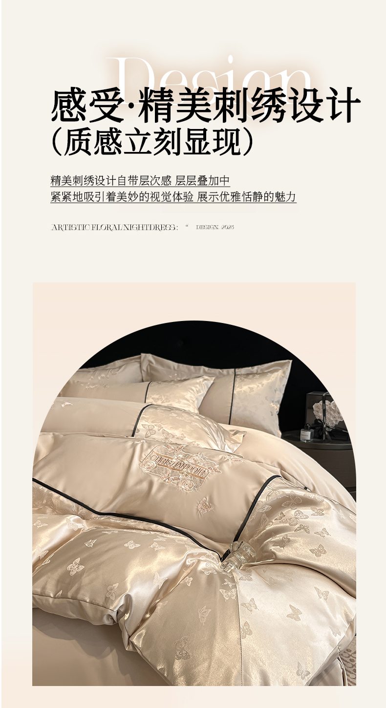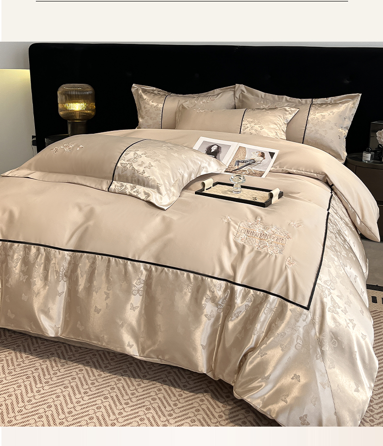 (总)金牛座家纺 2026新款亮丝细斜纹贡缎提花重工刺绣四件套床盖四件套-醉蝶,醉蝶-浅粉,醉蝶-高级灰,醉蝶-奶白,醉蝶-香槟,醉蝶-浅豆沙
