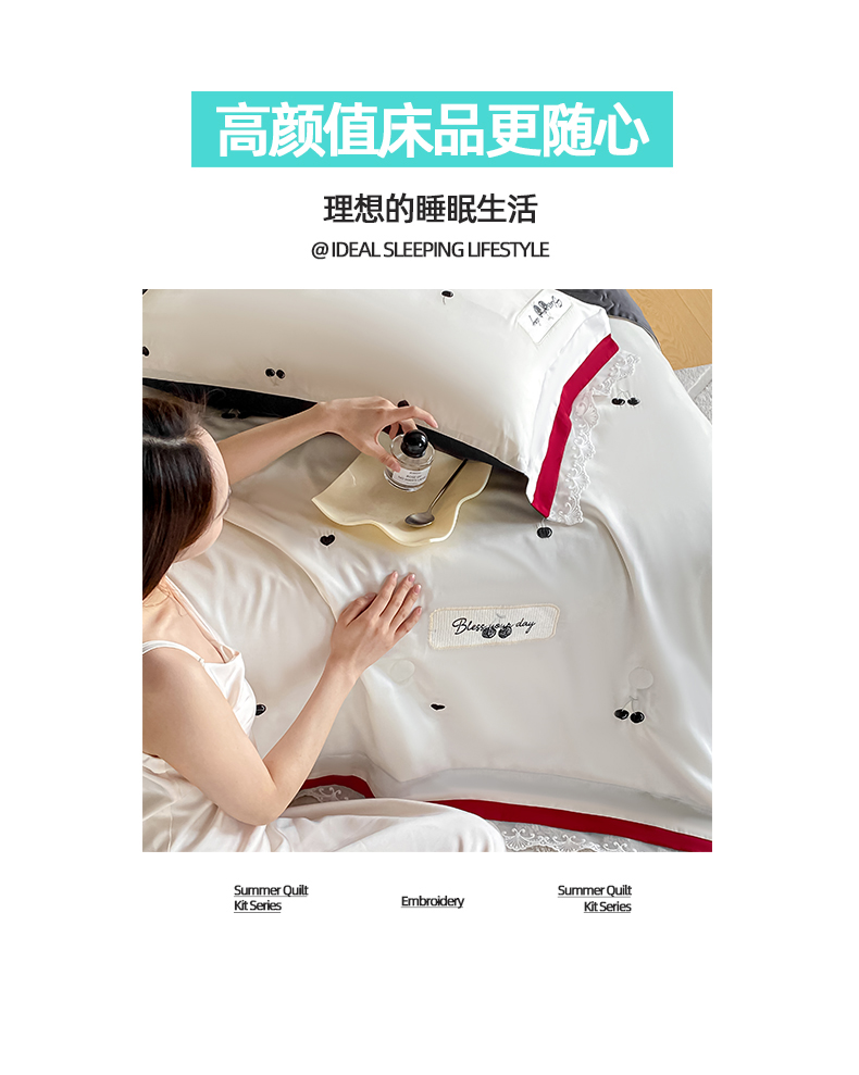 • 91家纺网 家纺一手货源 找家纺 (总)置顶家纺 22026新款水洗天丝夏被刺绣樱桃四件套,克洛伊-白+粉,克洛伊-白+黑,克洛伊-白+蓝,克洛伊-白+香芋紫,克洛伊-奶白