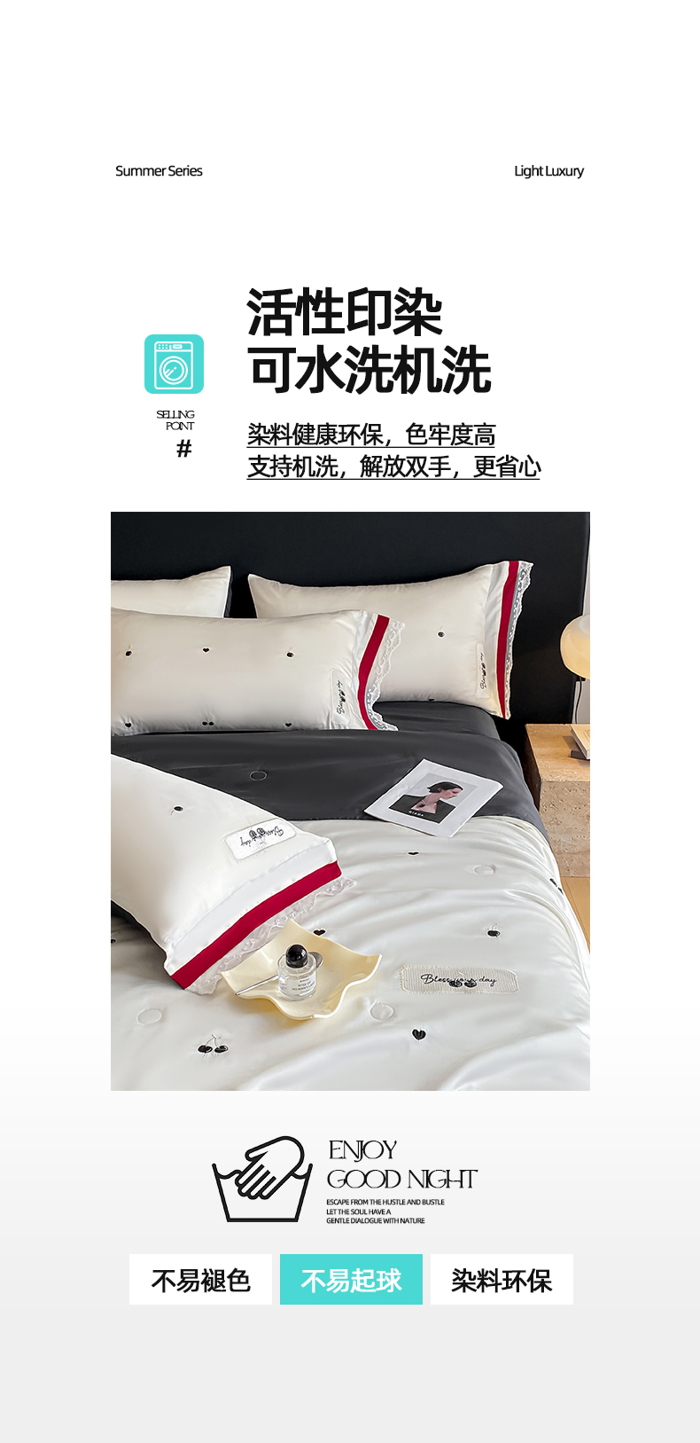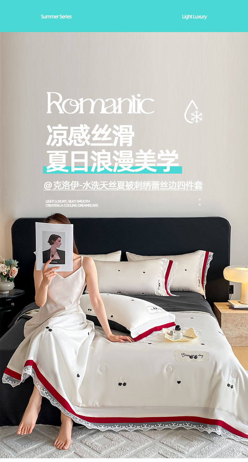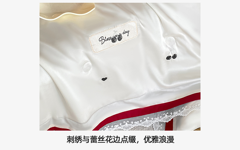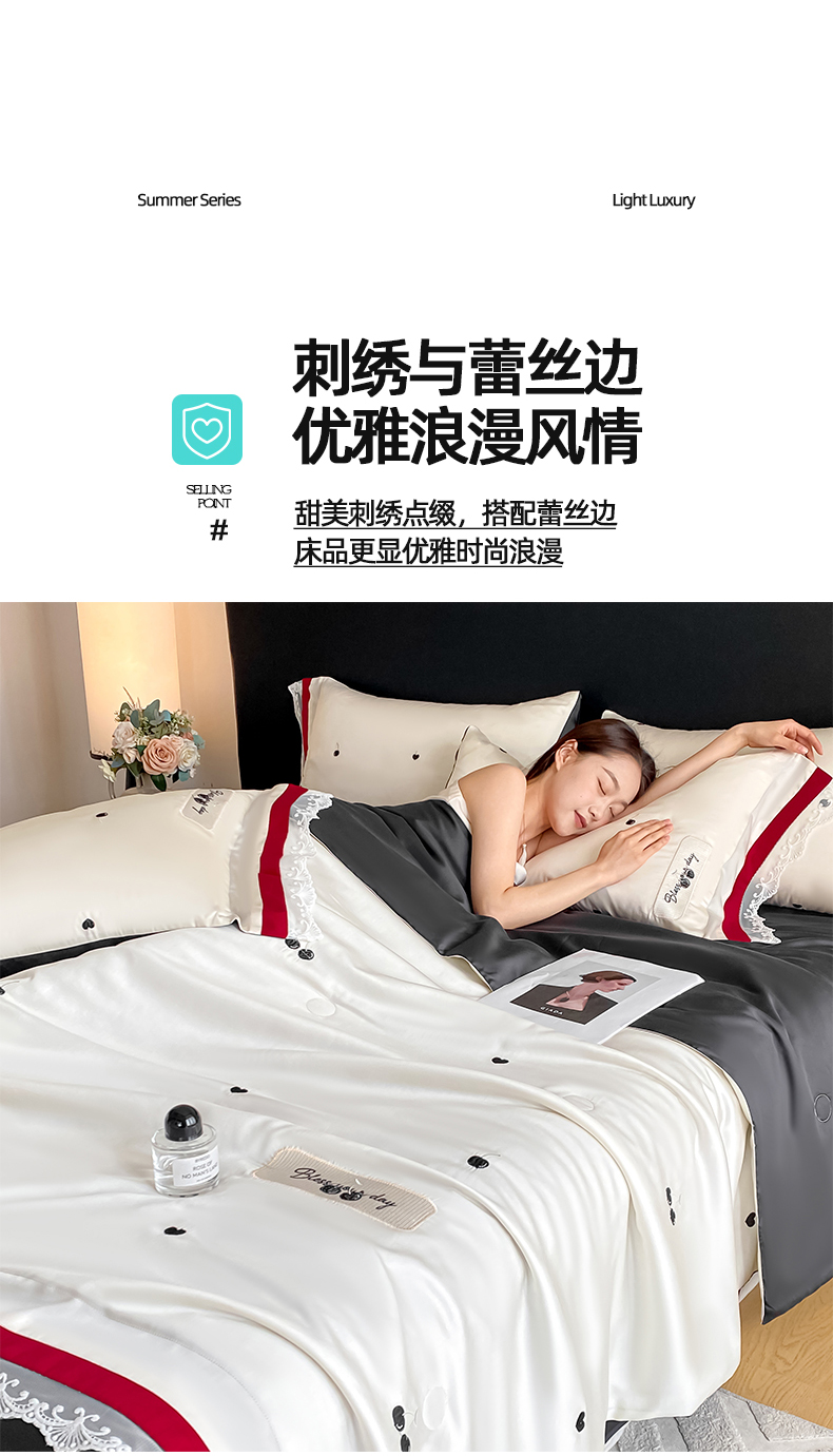 • 91家纺网 家纺一手货源 找家纺 置顶家纺 22026新款水洗天丝夏被刺绣樱桃四件套 克洛伊-白+黑