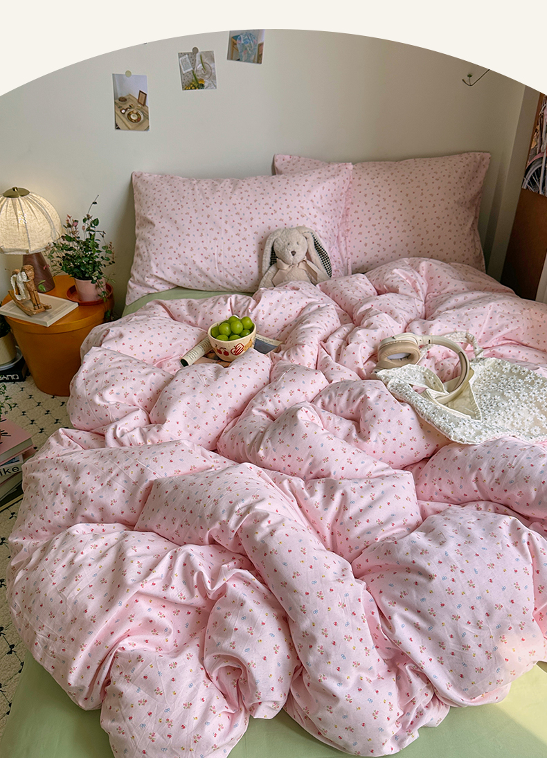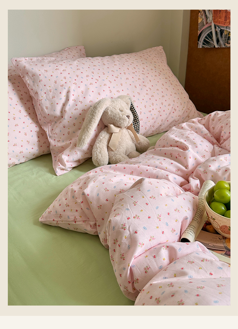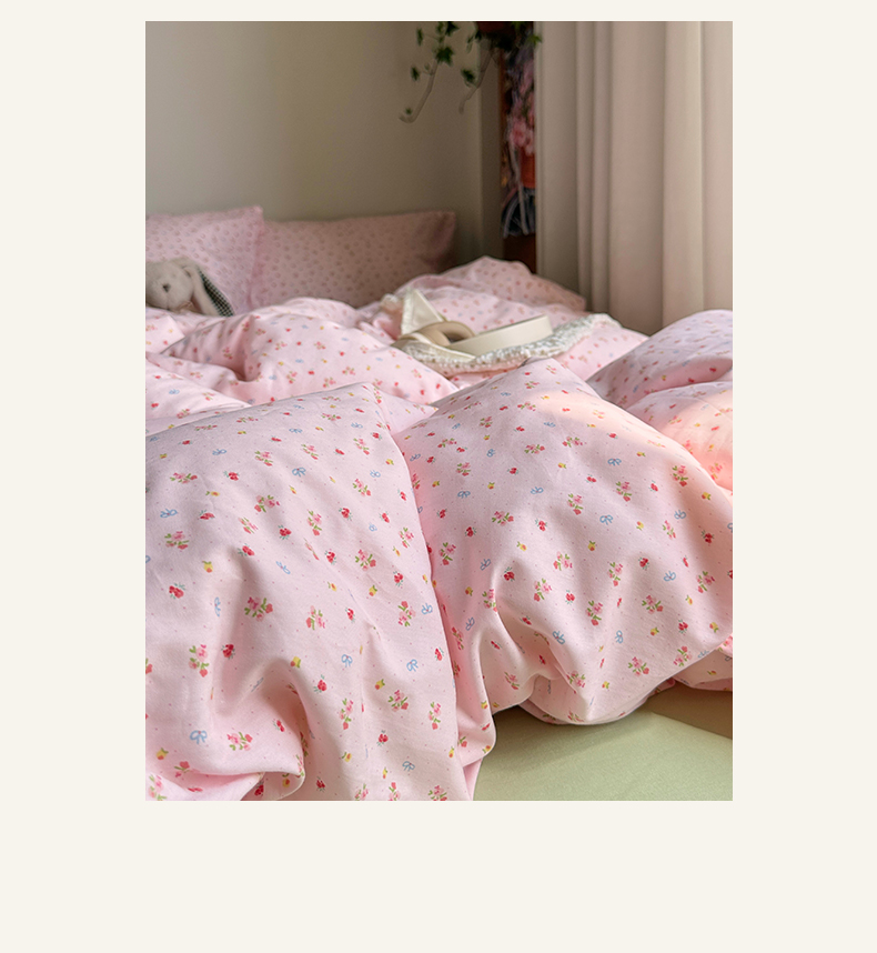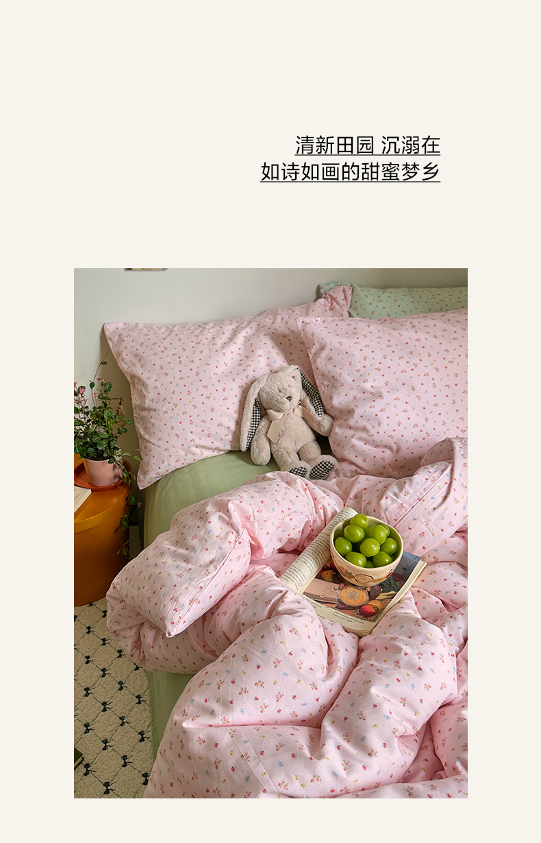 当前位置: 91家纺网 > 商品网购 > 床品套件 > 四件套 > 全棉普通四件套 > 艾咪-Amy ntmy 2026新款博主风清新田园小碎花全棉纯棉四件套-甜樱 清新甜樱-粉