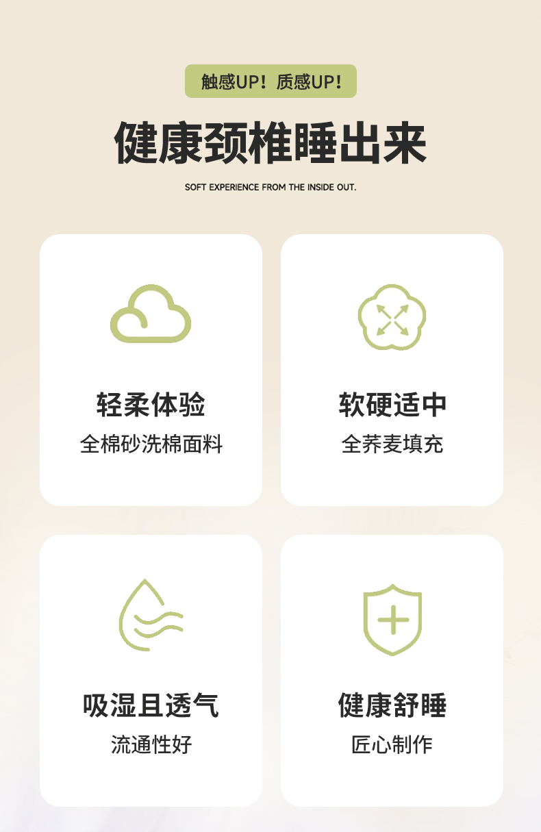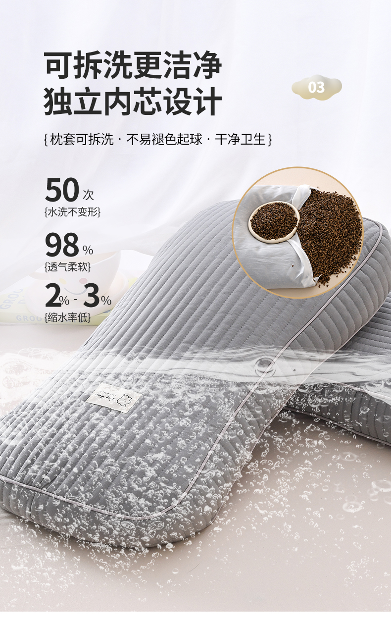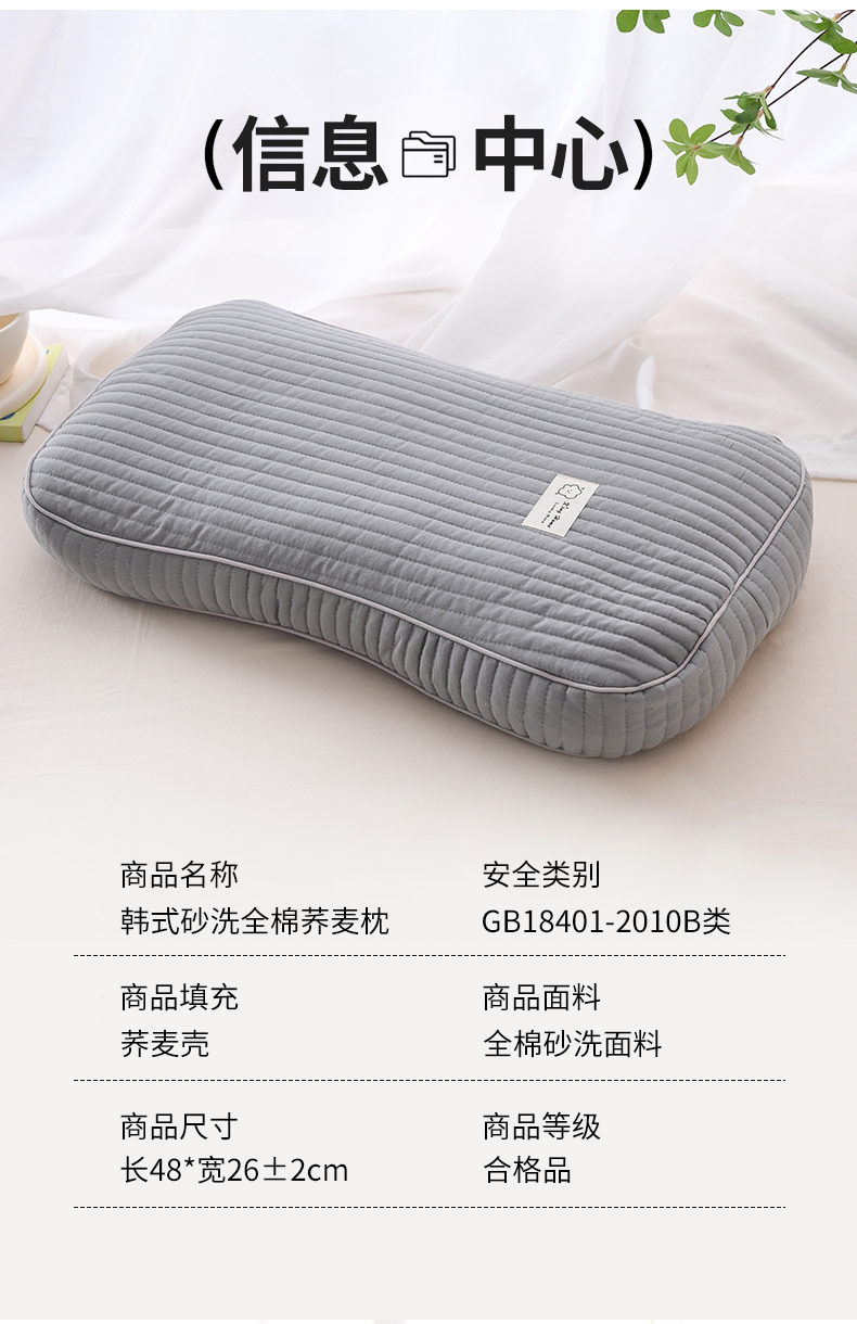 商品名称:(总)莉迪娅 2026新款枕芯全棉韩式砂洗全荞麦枕枕头枕芯