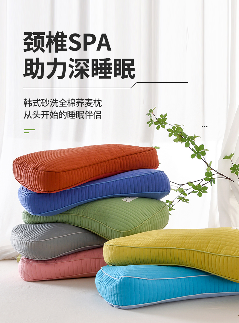 (总)莉迪娅 2026新款枕芯全棉韩式砂洗全荞麦枕枕头枕芯