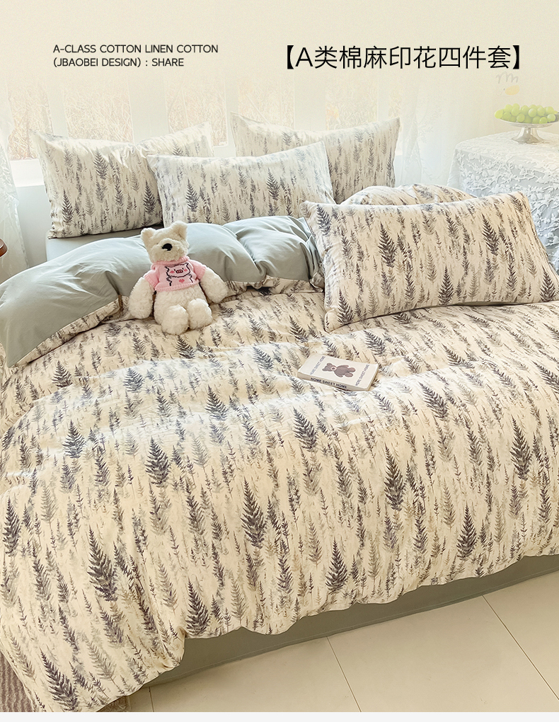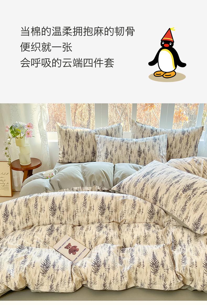 当前位置: 91家纺网 > 商品网购 > 床品套件 > 四件套 > 全棉普通四件套 > 名兮家居 2026新款A类全棉棉麻四件套 松间雾