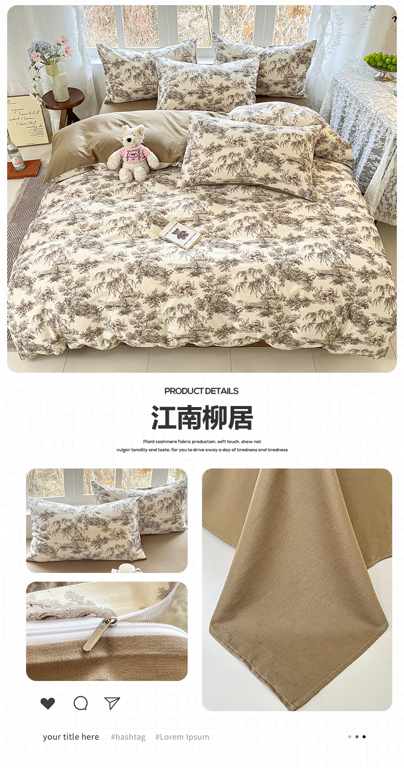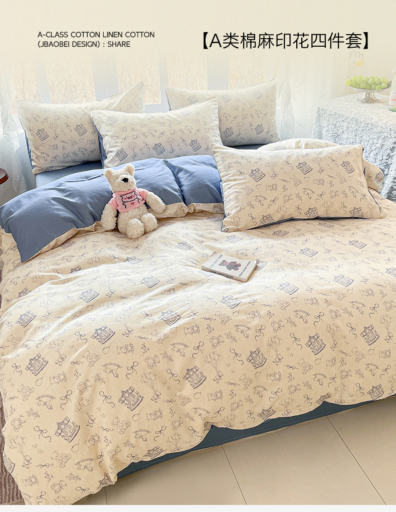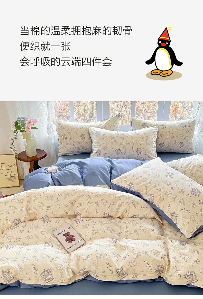 当前位置: 91家纺网 > 商品网购 > 床品套件 > 四件套 > 全棉普通四件套 > 名兮家居 2026新款A类全棉棉麻四件套 时光乐园