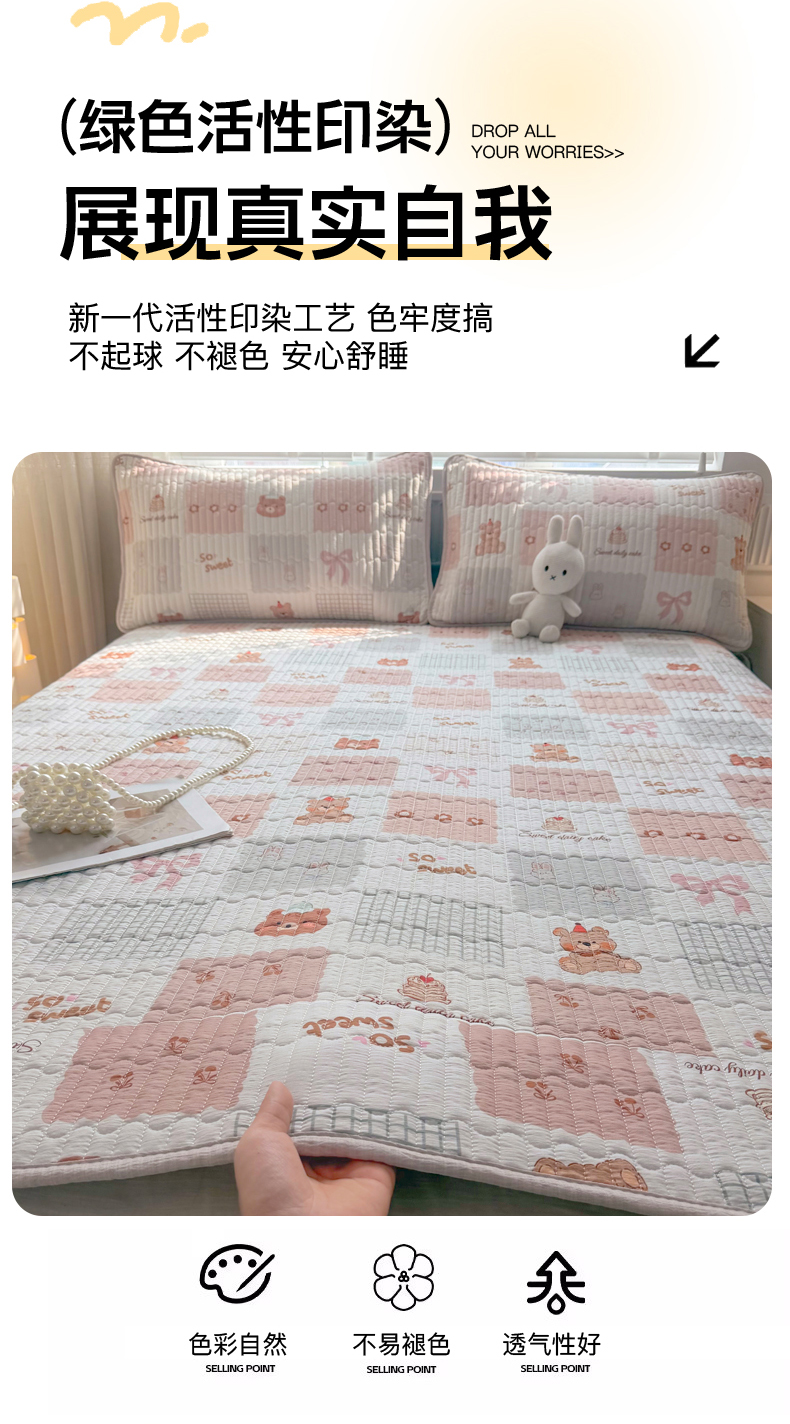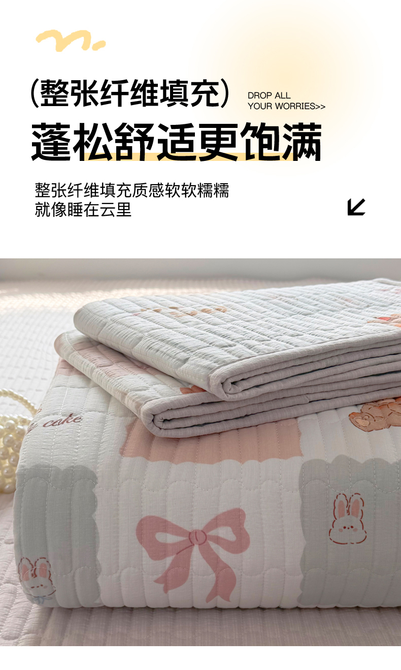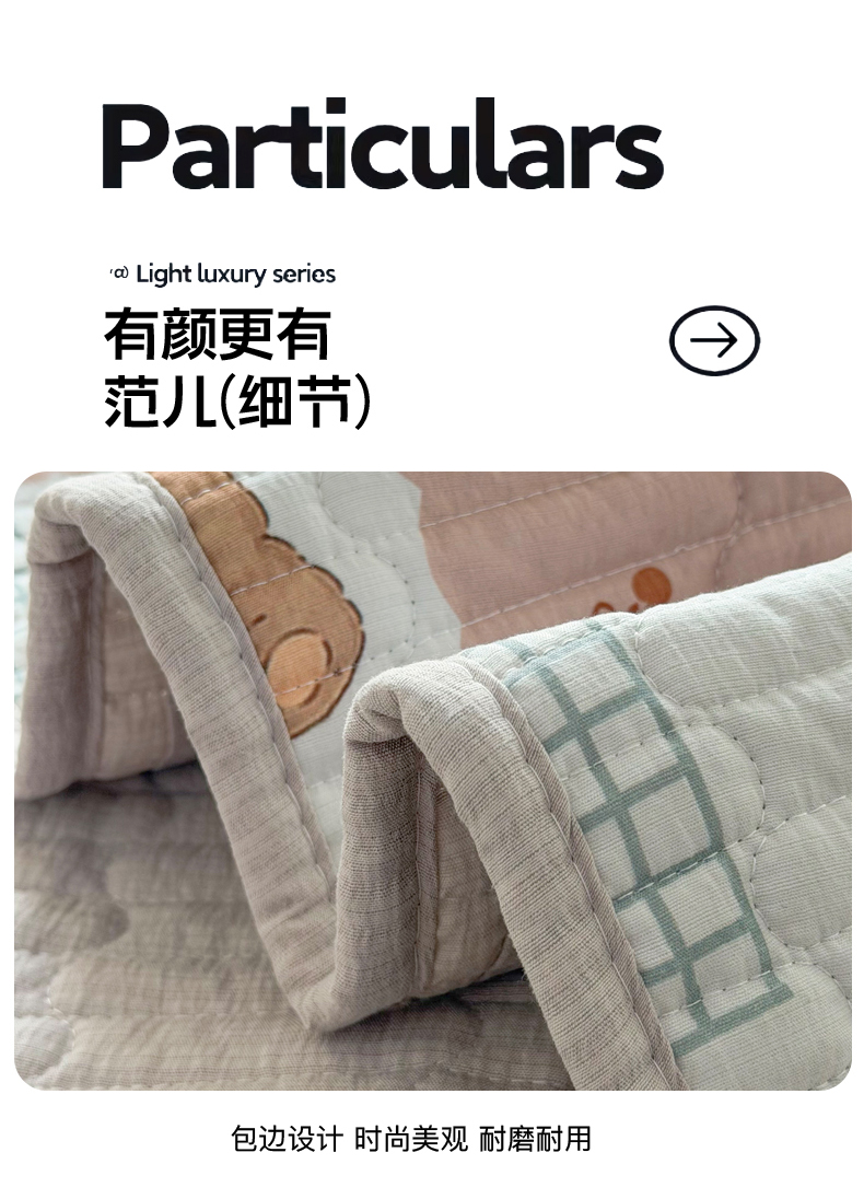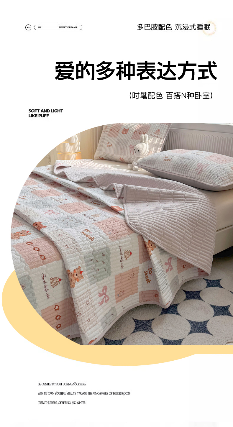 • 91家纺网 家纺一手货源 找家纺 悠米悠家 2026春夏新款木棉双层纱单床盖 床盖单件 甜莓小熊