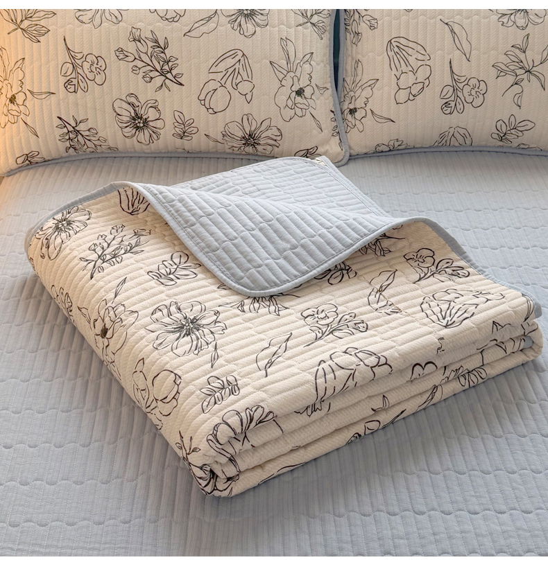 • 91家纺网 家纺一手货源 找家纺 悠米悠家 2026春夏新款木棉双层纱单床盖 床盖单件 墨色花卉