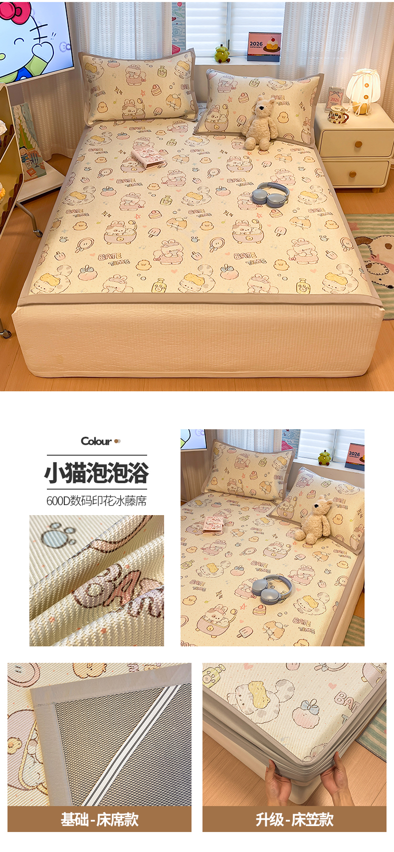 (总)懒猫家纺 2026春夏新款600D数码印花冰藤凉席席子-床笠款,芭蕾小兔,草莓与花,春意花香,呆萌小兔,动物汽车,独角兽-白,独角兽-粉,法式田园,粉色爱心,海底世界,蝴蝶领带熊,花朵粉兔,花田小兔,蓝色花骨朵,浪漫郁金香,莓果心事,奶茶猫咪,曲奇小狗,森林小熊,狮子王,时光清浅,睡意朦胧,硕果,甜品小狗,甜品小屋,甜心天使,兔兔花开,玩耍小狗-蓝,玩耍小狗-绿,小爱心,小恐龙,小恐龙怪兽,小猫泡泡浴,小星愿,小熊仔,小鸭子,星月,游乐园,郁金香