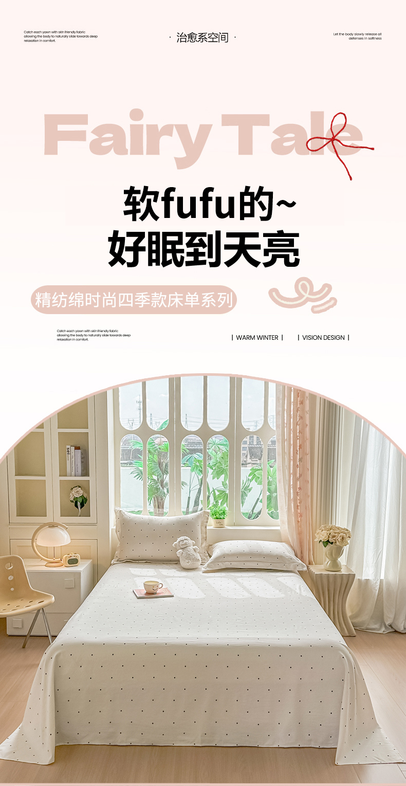 商品名称:卓缦家纺 2026新款波点四季款床单卧室宿舍学生单品床单床单单件 良品象牙白