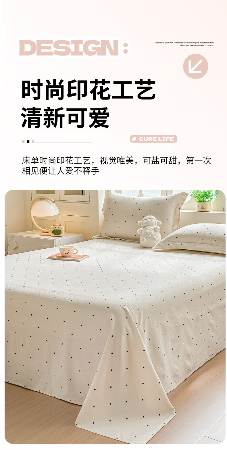 卓缦家纺 2026新款波点四季款床单卧室宿舍学生单品床单床单单件 良品象牙白