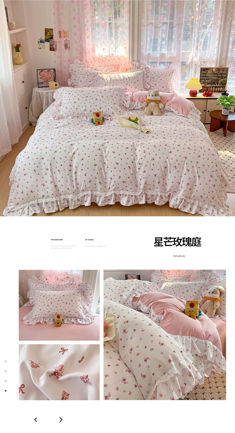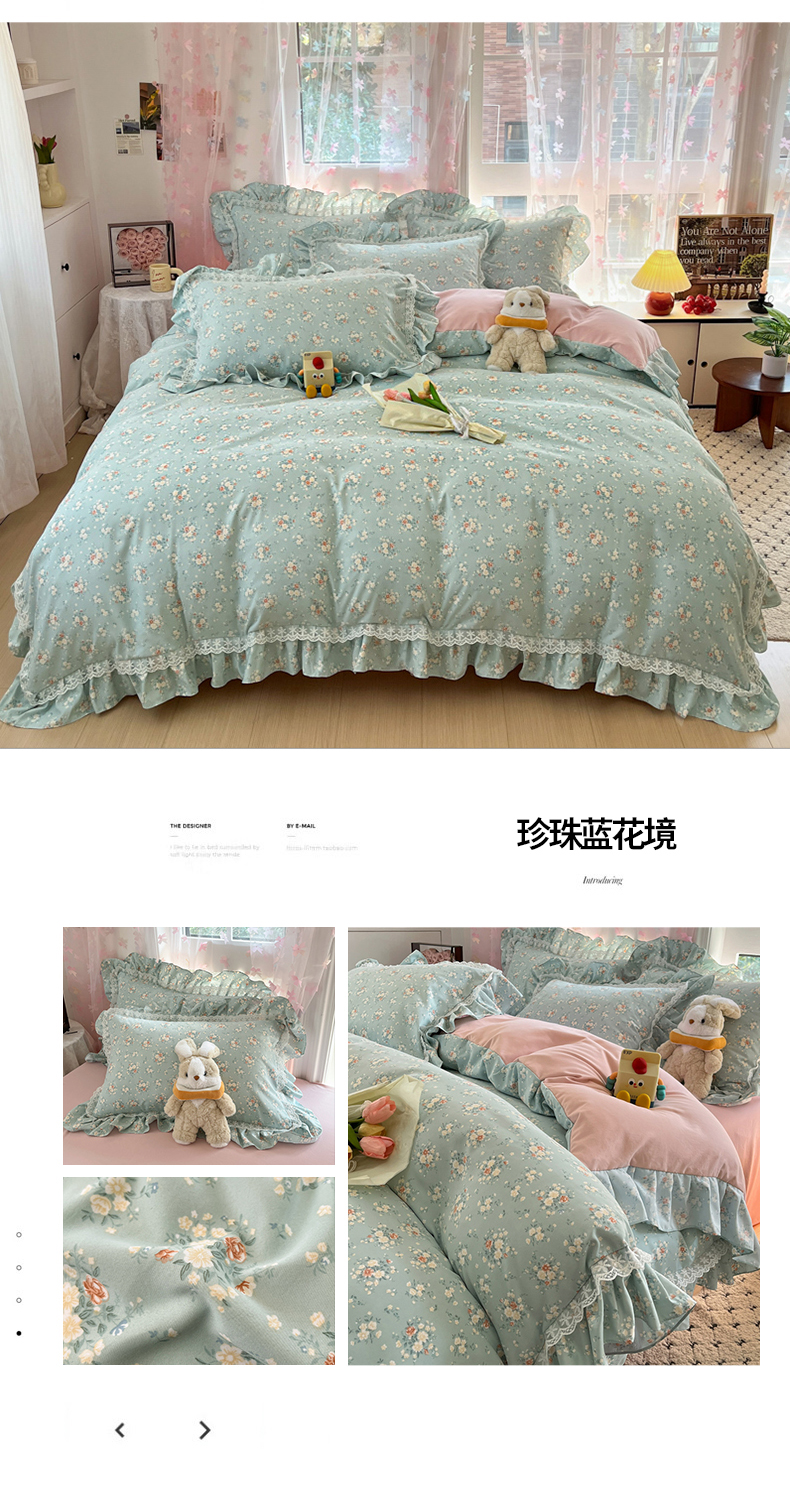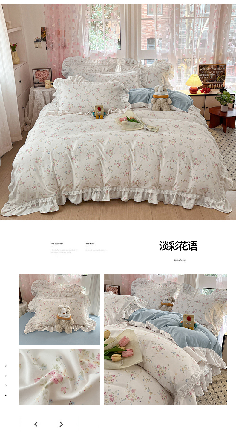 商品名称:畅畅家纺 2026新款春秋韩版A类公主风云柔棉工艺款花边四件套 浅花轻语