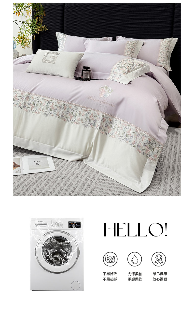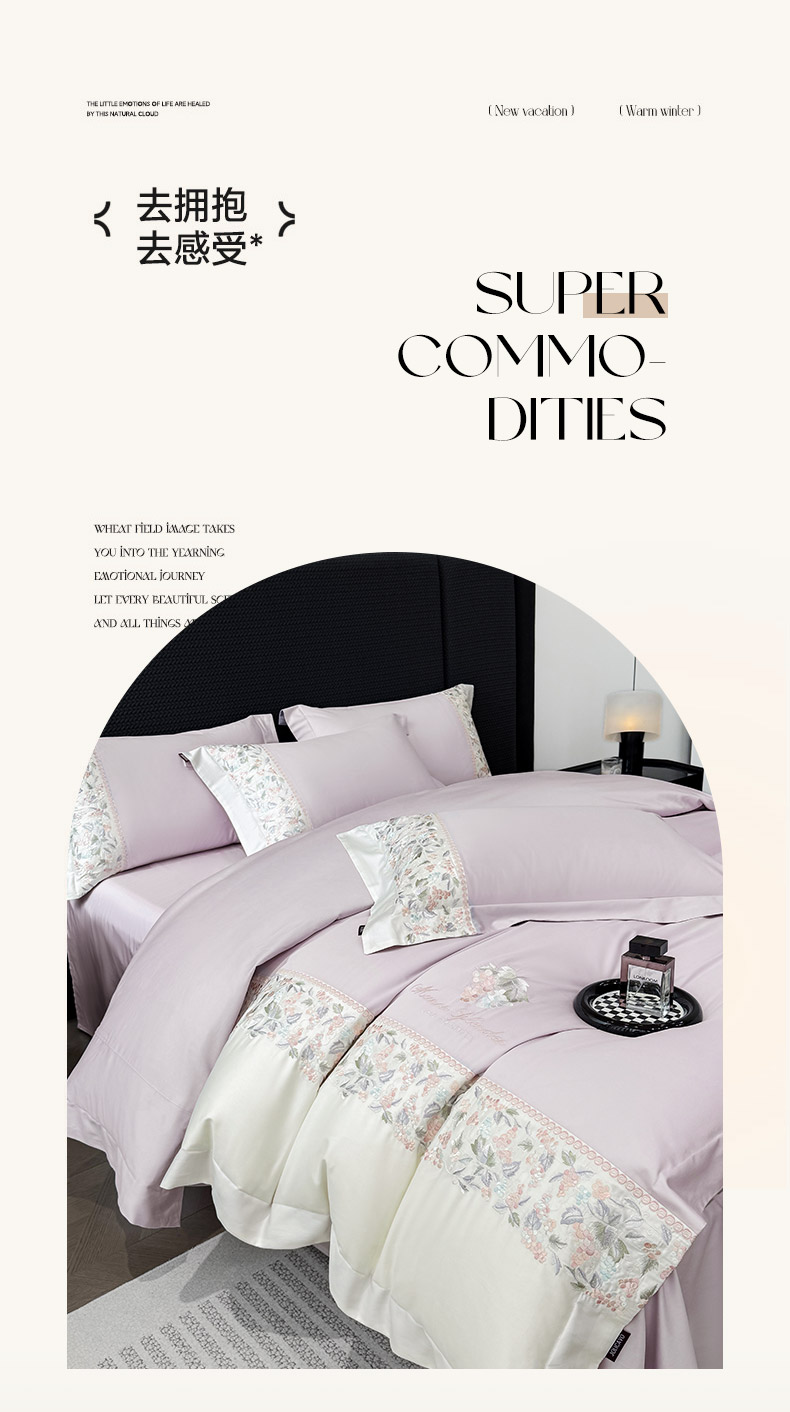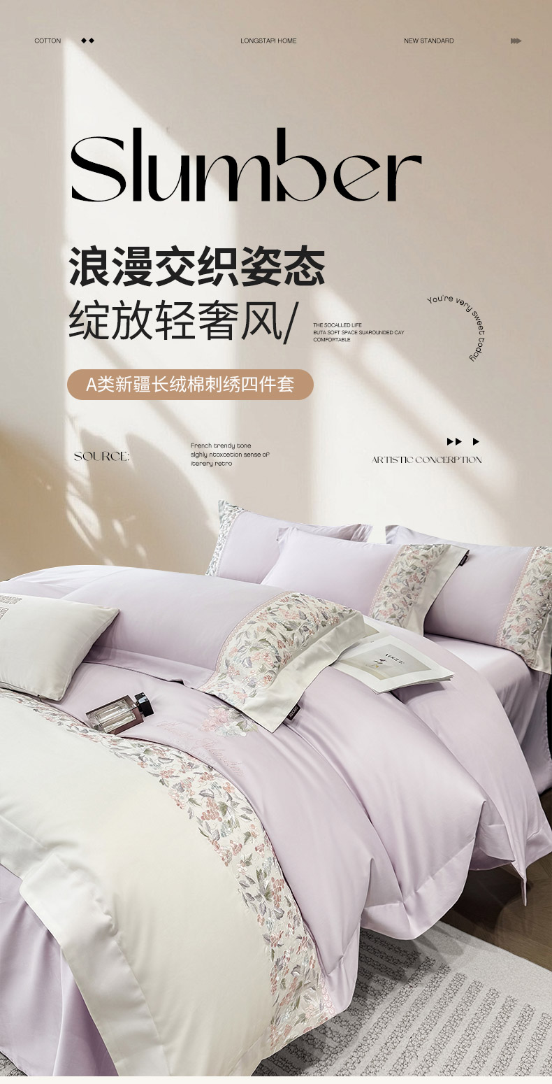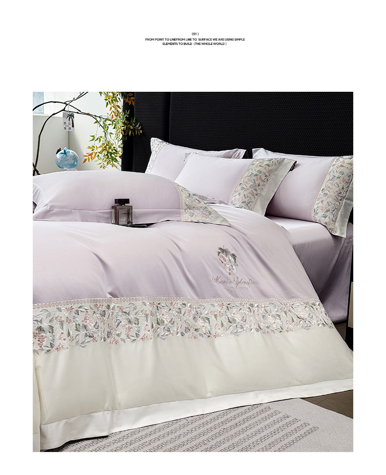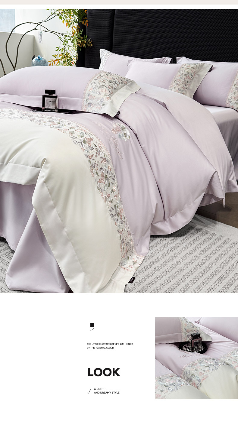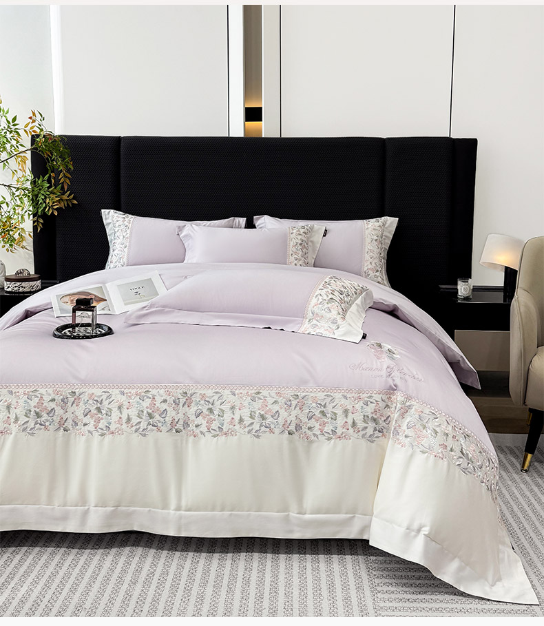 当前位置: 91家纺网 > 商品网购 > 床品套件 > 四件套 > 长绒棉四件套 > 2026新品100支贡缎长绒棉纯棉四件套全棉重工刺绣被套床单床笠新品四季款轻奢风 琉璃花语-黛紫