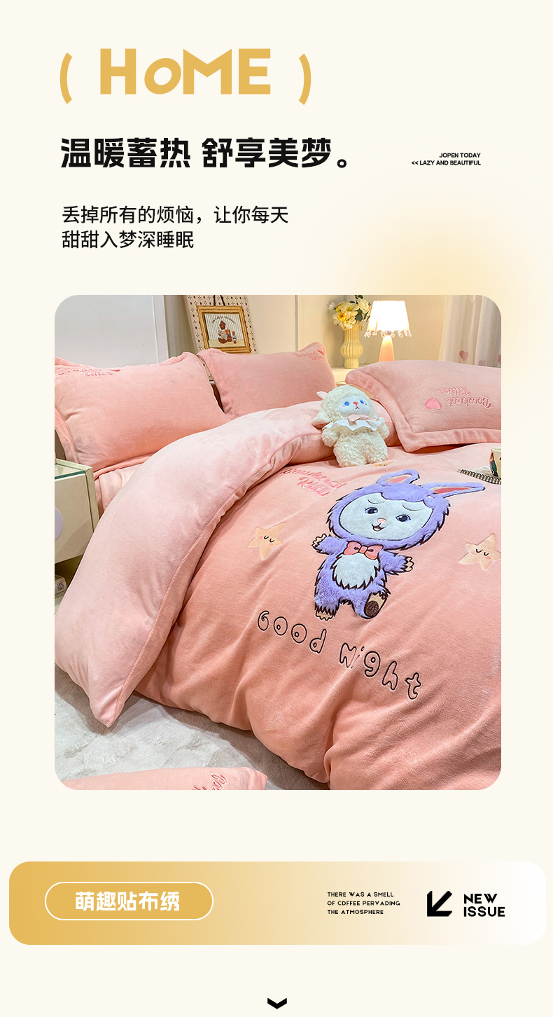 当前位置: 91家纺网 > 商品网购 > 床品套件 > 四件套 > 牛奶绒四件套 > 欧妮家纺 2025新款牛奶绒贴布绣四件套 小兔-灰