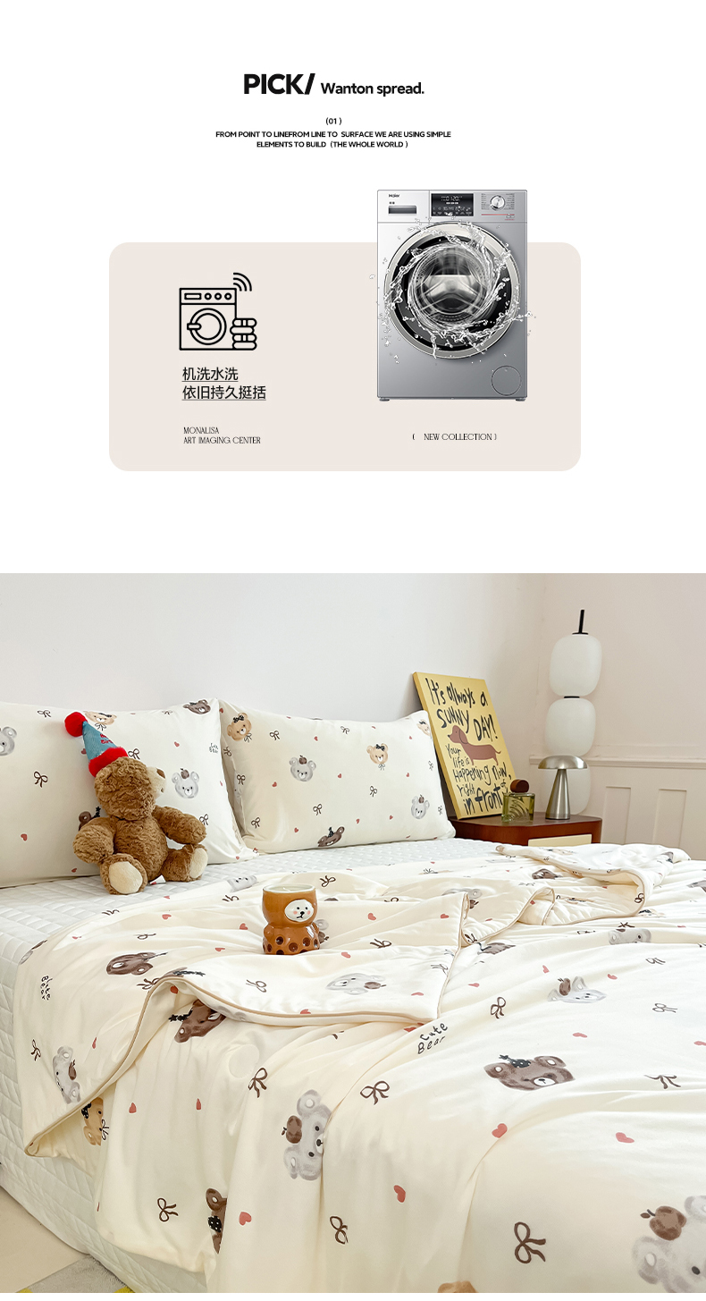 (总)一加一 2026春夏新款云小棉贴布绣花大豆夏凉被空调被夏被四件套,波点小狗,波点熊仔,蜜桃小兔,抹茶熊猫,奶油小鳄鱼