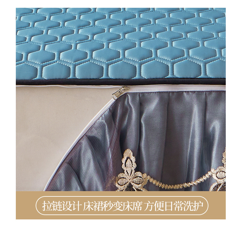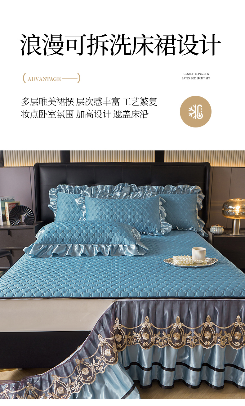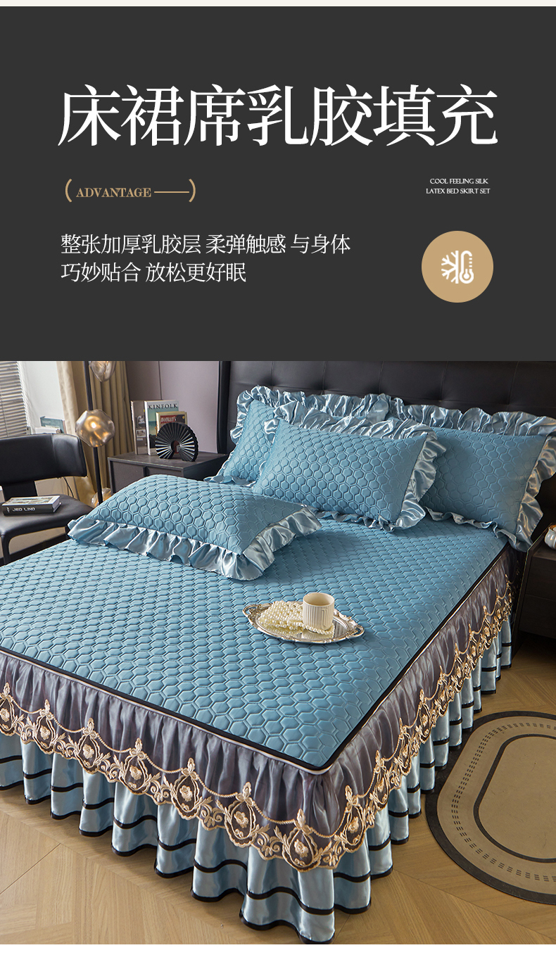 (总)好儿喜家纺 2024新款伊芙琳凉席床裙三件套,浅绿,橄榄绿,奶白,浅粉,浅蓝