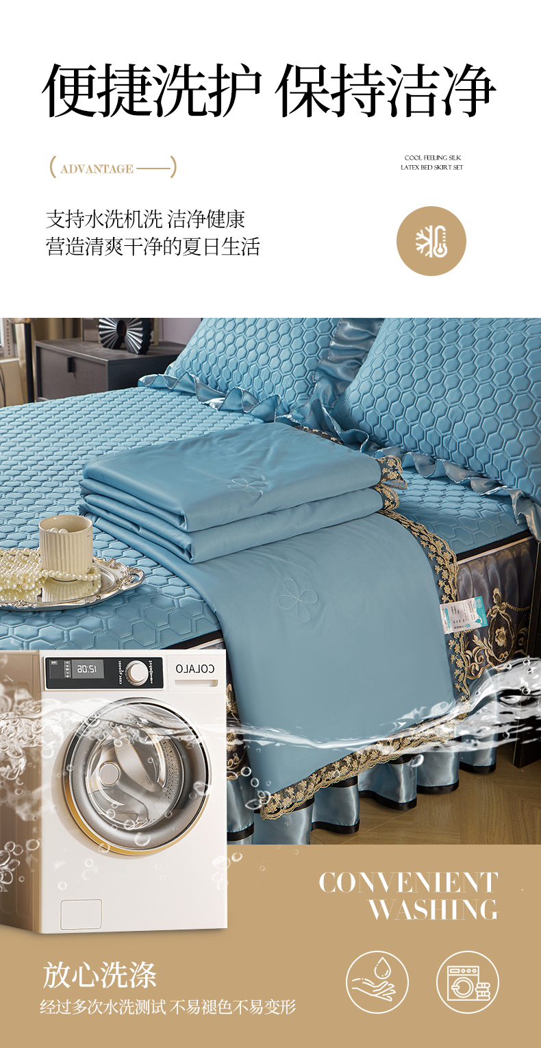 (总)好儿喜家纺 2026新款夏季高端乳胶凉席三件套可脱卸花边凉席-雅颂系列,雅颂-宾利蓝,雅颂-果绿,雅颂-奶白,雅颂-浅粉,雅颂-浅灰,雅颂-浅紫