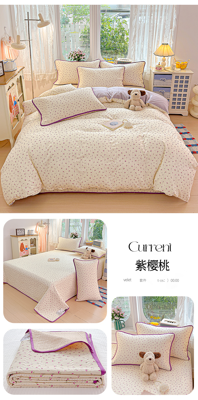 当前位置: 91家纺网 > 商品网购 > 床品套件 > 四件套 > 全棉普通四件套 > 文黛家居 2026新款全棉双层纱床盖四件套 紫樱桃