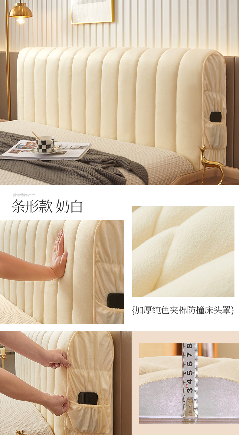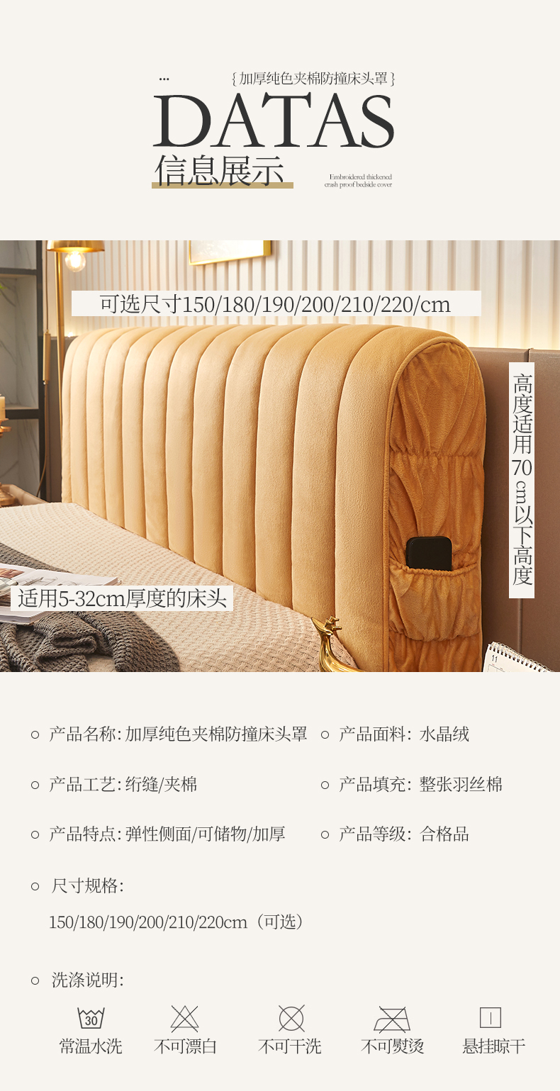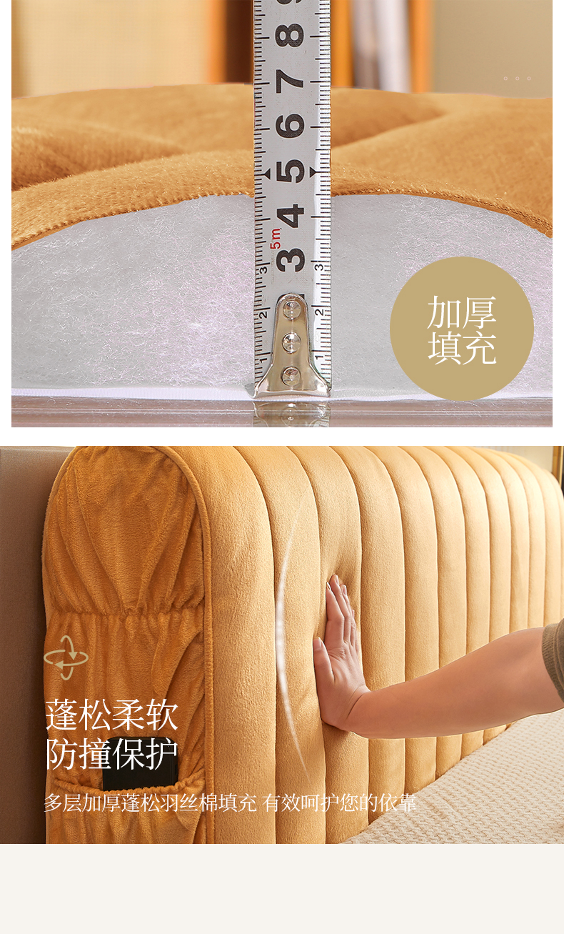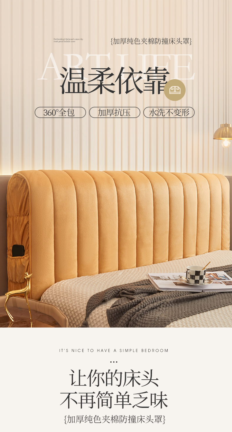 商品名称:情恒家纺 2026新款立体防撞双面加厚床头罩条形款 条形款 暖杏