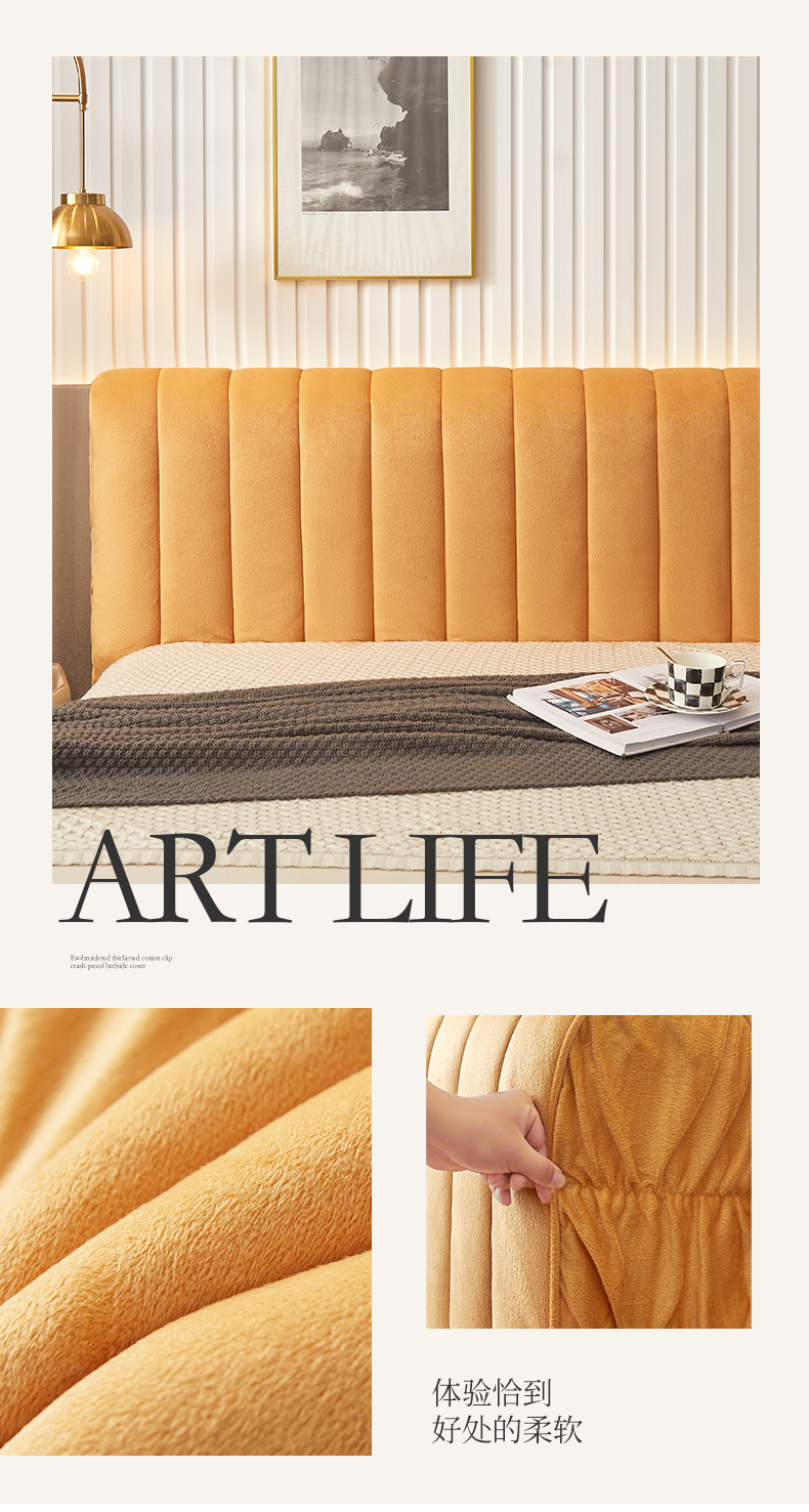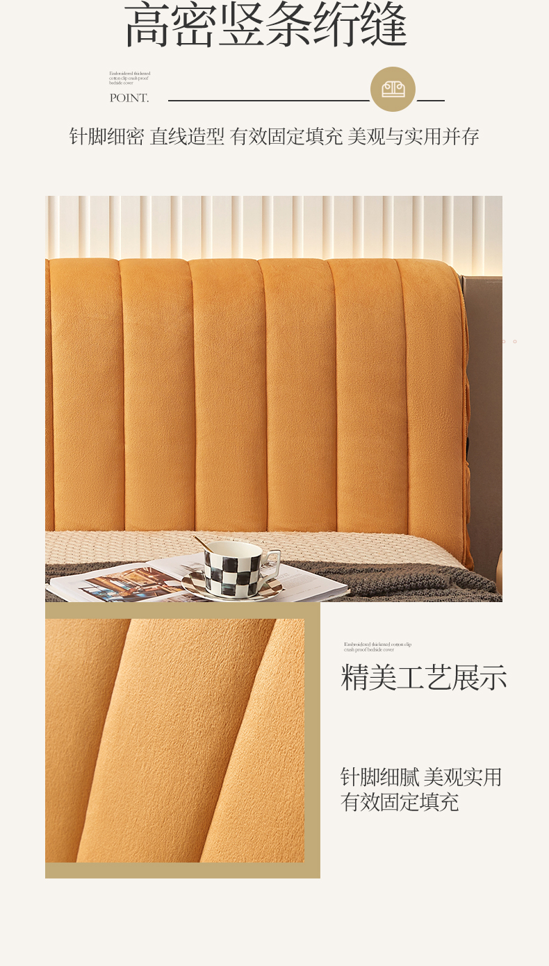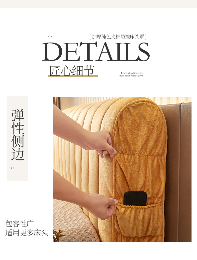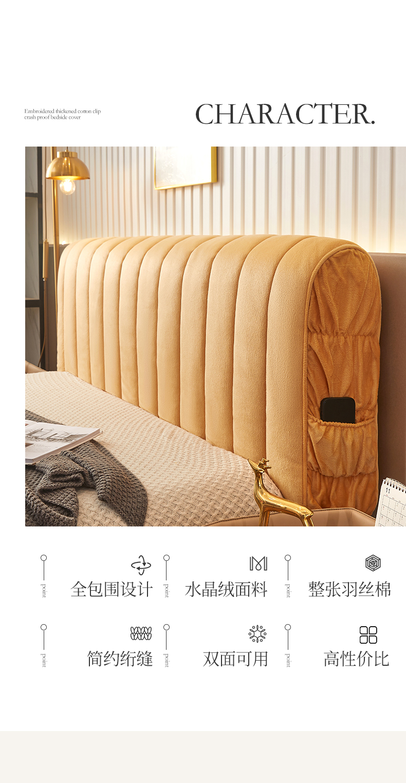 商品名称:情恒家纺 2026新款立体防撞双面加厚床头罩条形款 条形款 暖杏