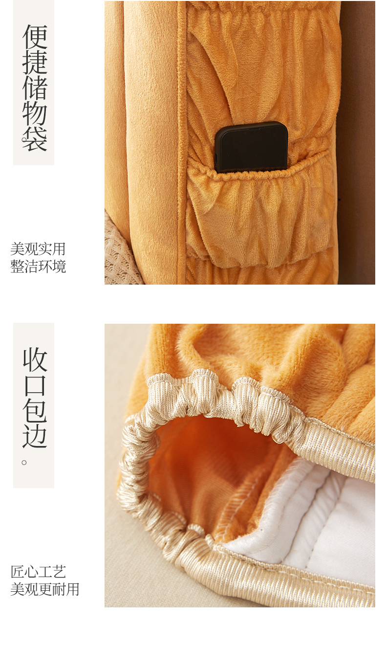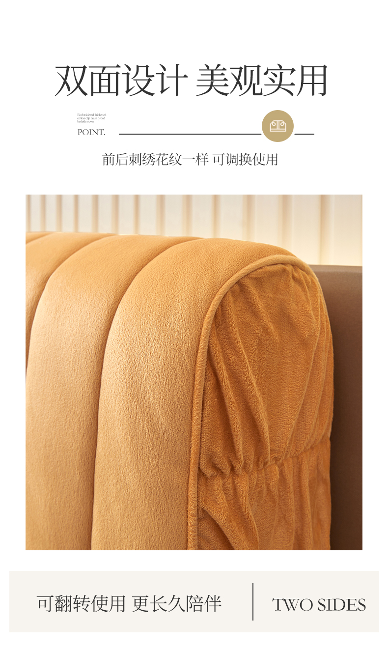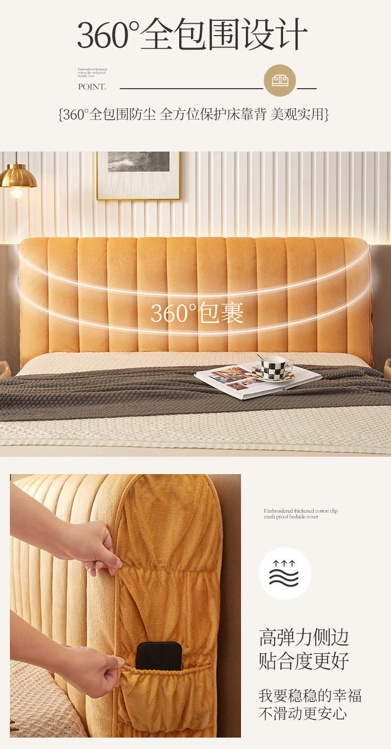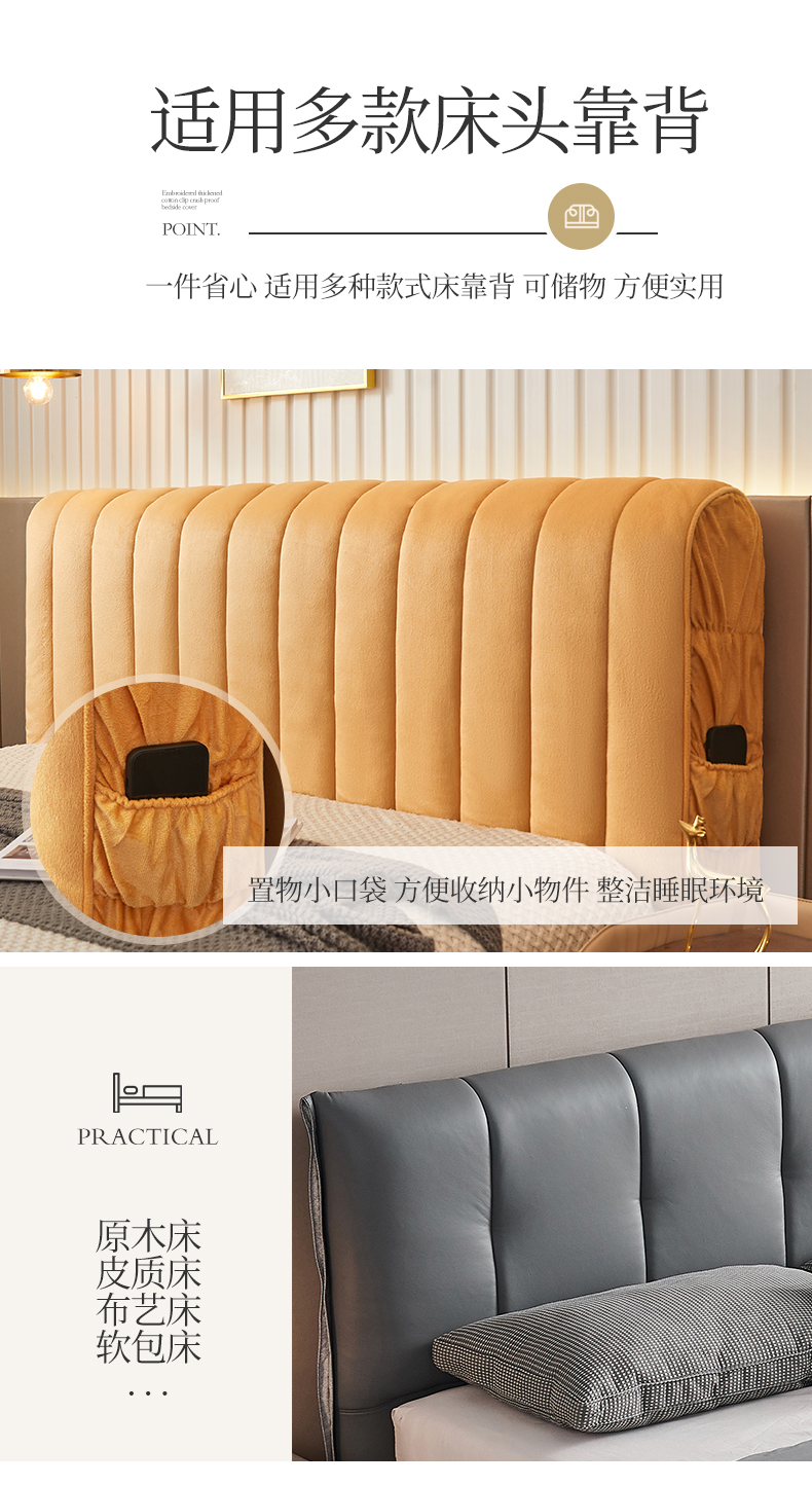 商品名称:情恒家纺 2026新款立体防撞双面加厚床头罩条形款 条形款 暖杏