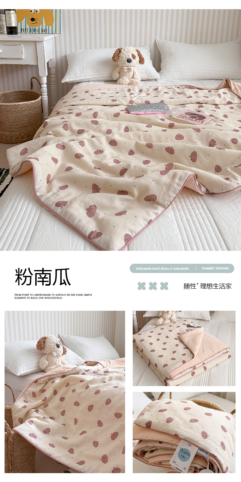(总)暖生活 2026新款A类“冰纱”母婴级全棉纯棉双层纱夏被夏凉被空调被(礼盒包装),组合图仅供展示不可下单,春日兔语,粉南瓜,灰调小马,可可蘑菇,绿野粉花,奶咖小狗,绒绒小狗,桃枝枝,眼镜熊