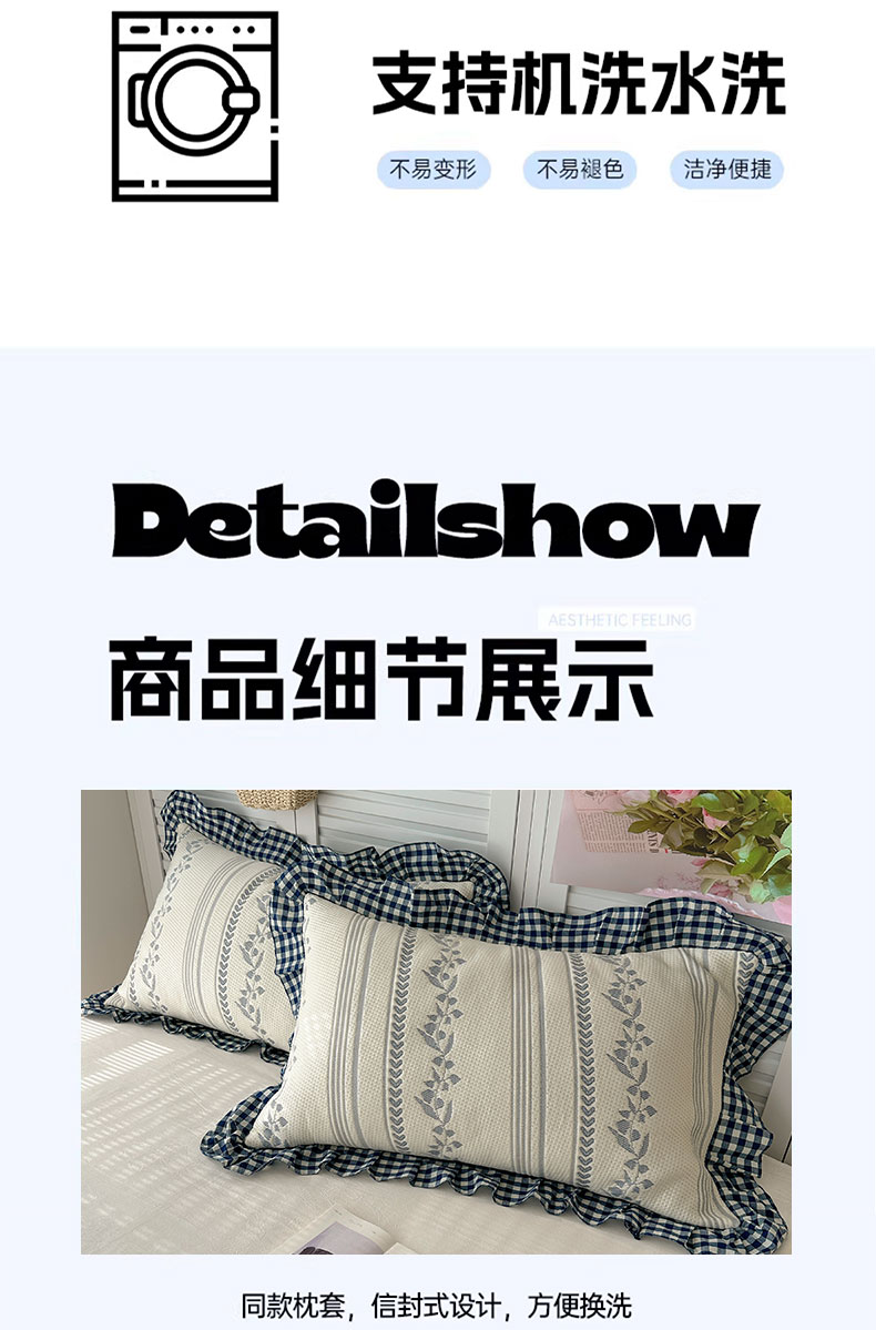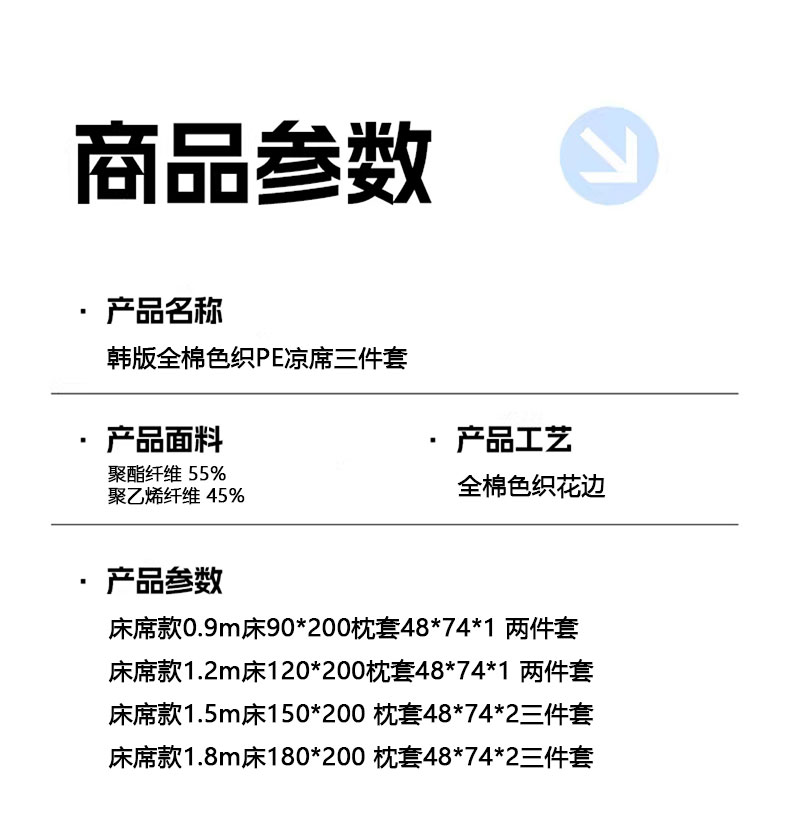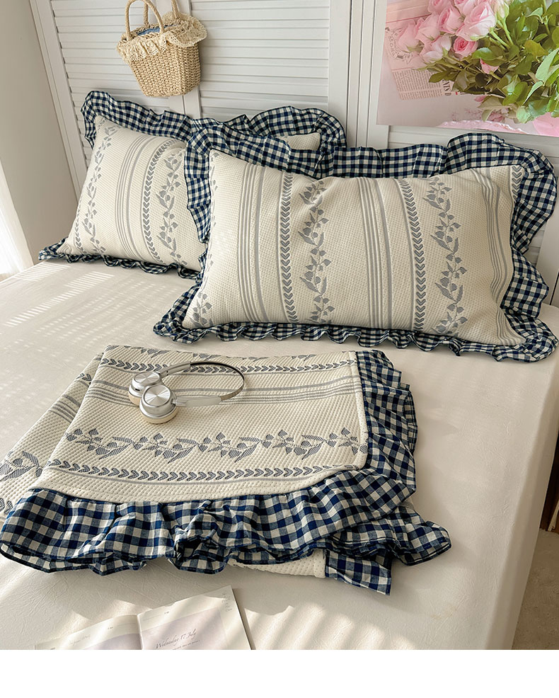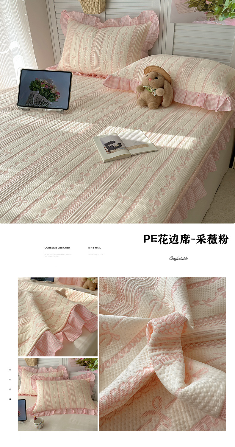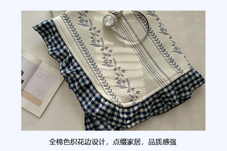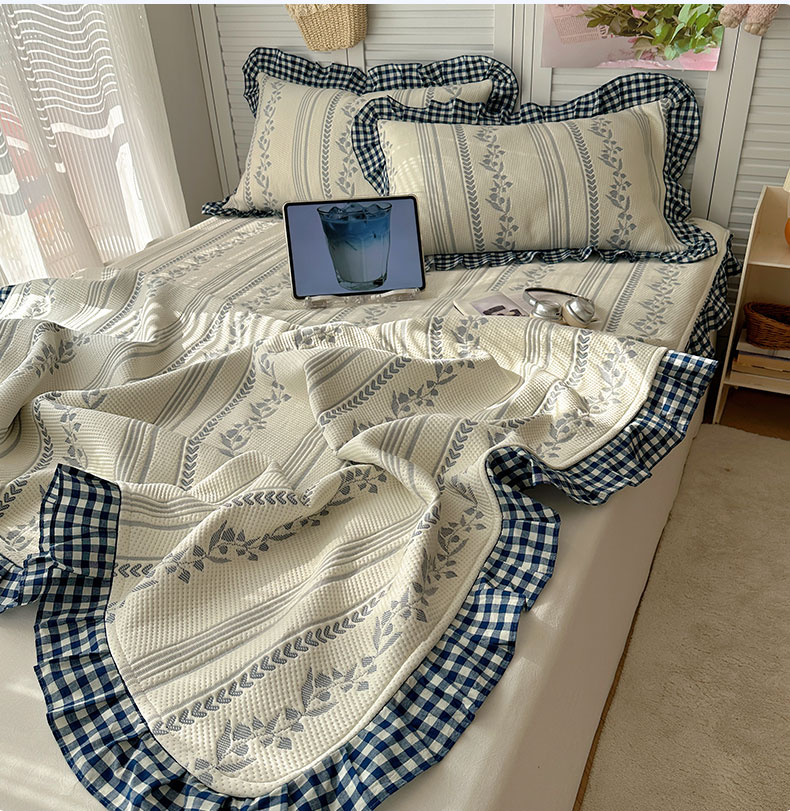 当前位置: 91家纺网 > 商品网购 > 床上用品 > 凉席 > 其他凉席 > 桃子家居 2026新款A类韩版全棉色织花边工艺提花PE凉感凉席席子凉席三件套系列 PE花边席-花西子蓝