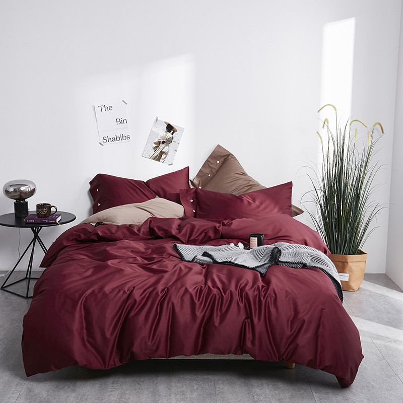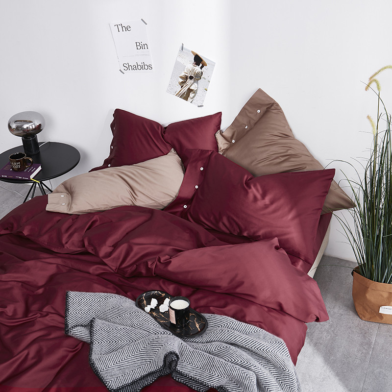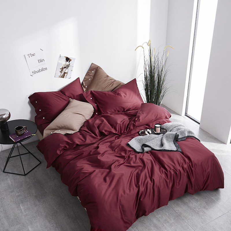 商品名称:优然居家纺 60支长绒棉纯色四件套酒红