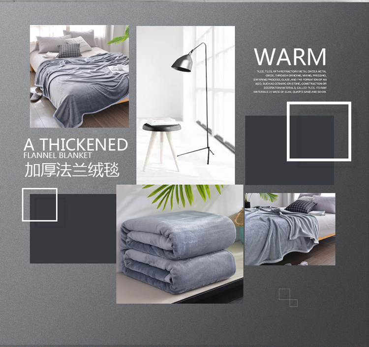 雅萱家纺 云貂绒法兰绒珊瑚绒加厚毛毯纯色毯 水银灰