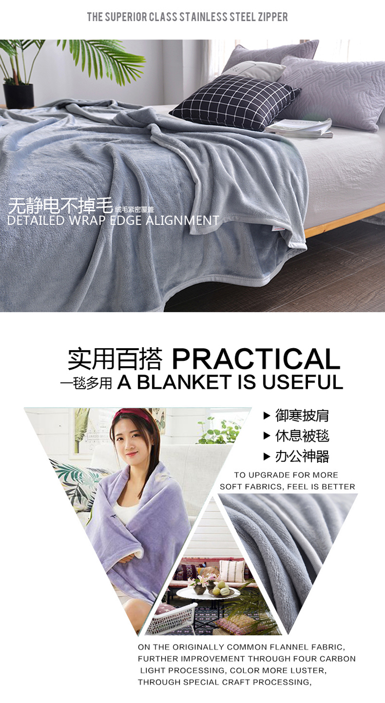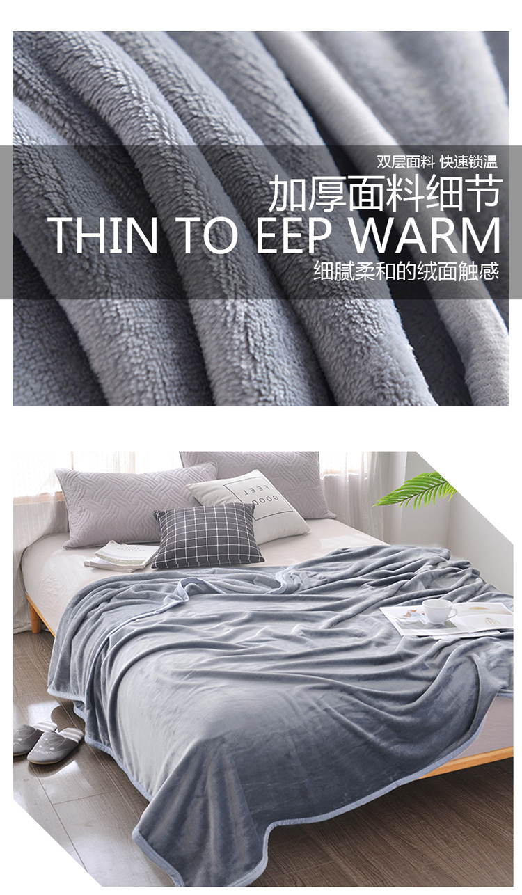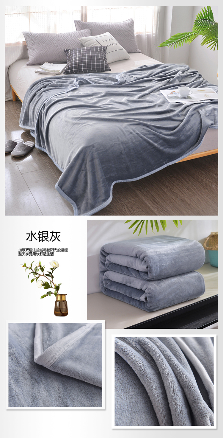 商品名称:雅萱家纺 云貂绒法兰绒珊瑚绒加厚毛毯纯色毯 水银灰
