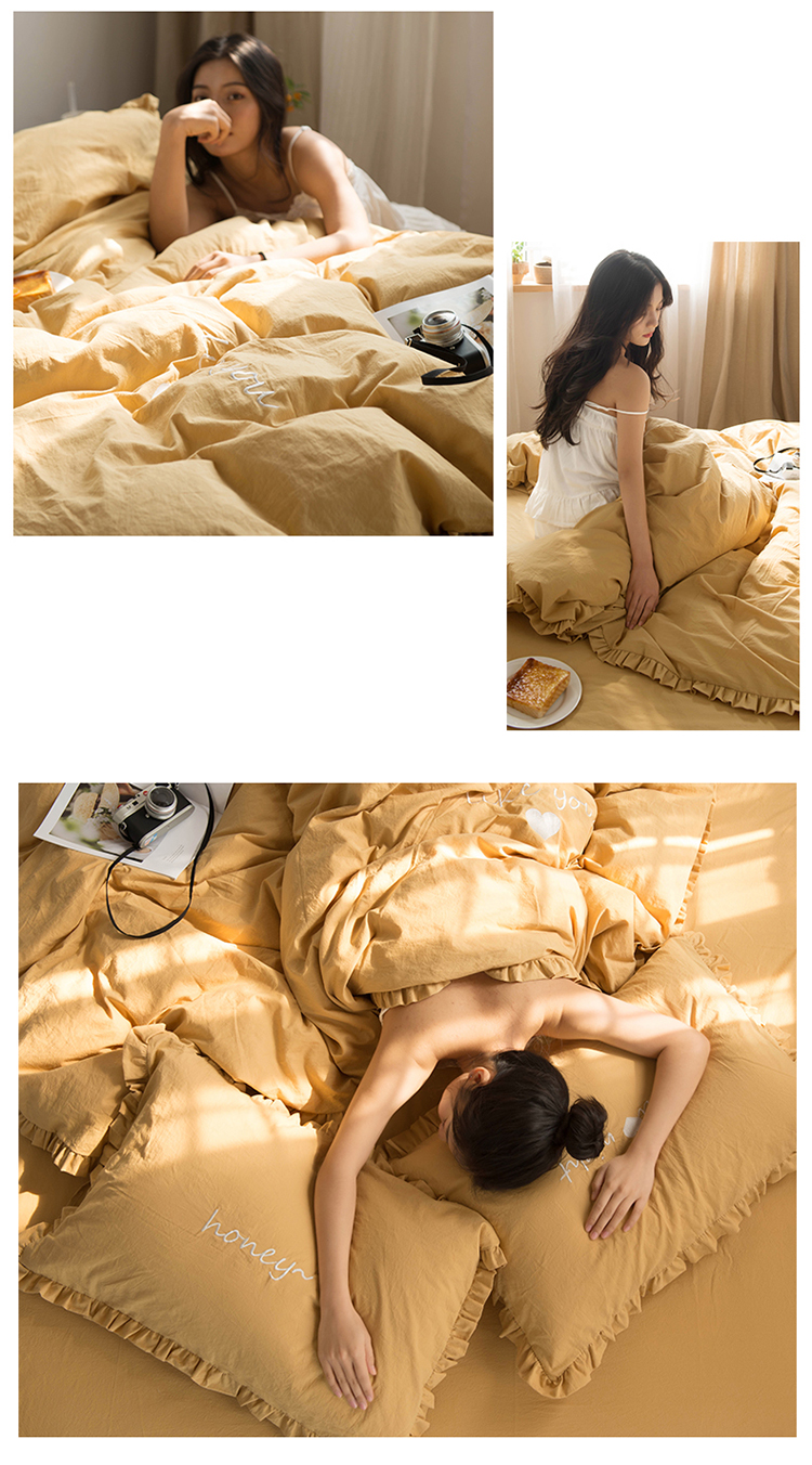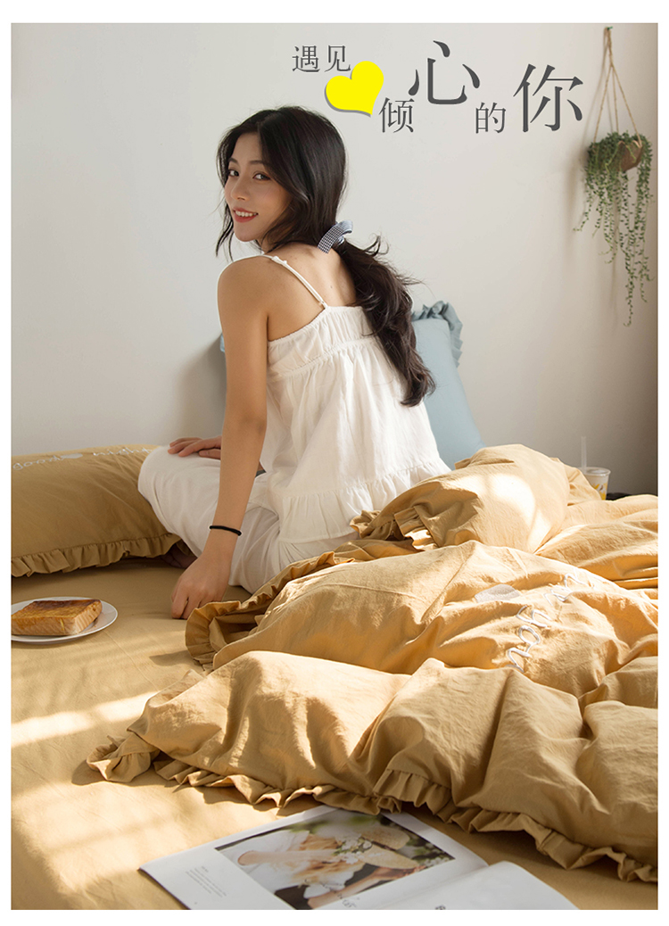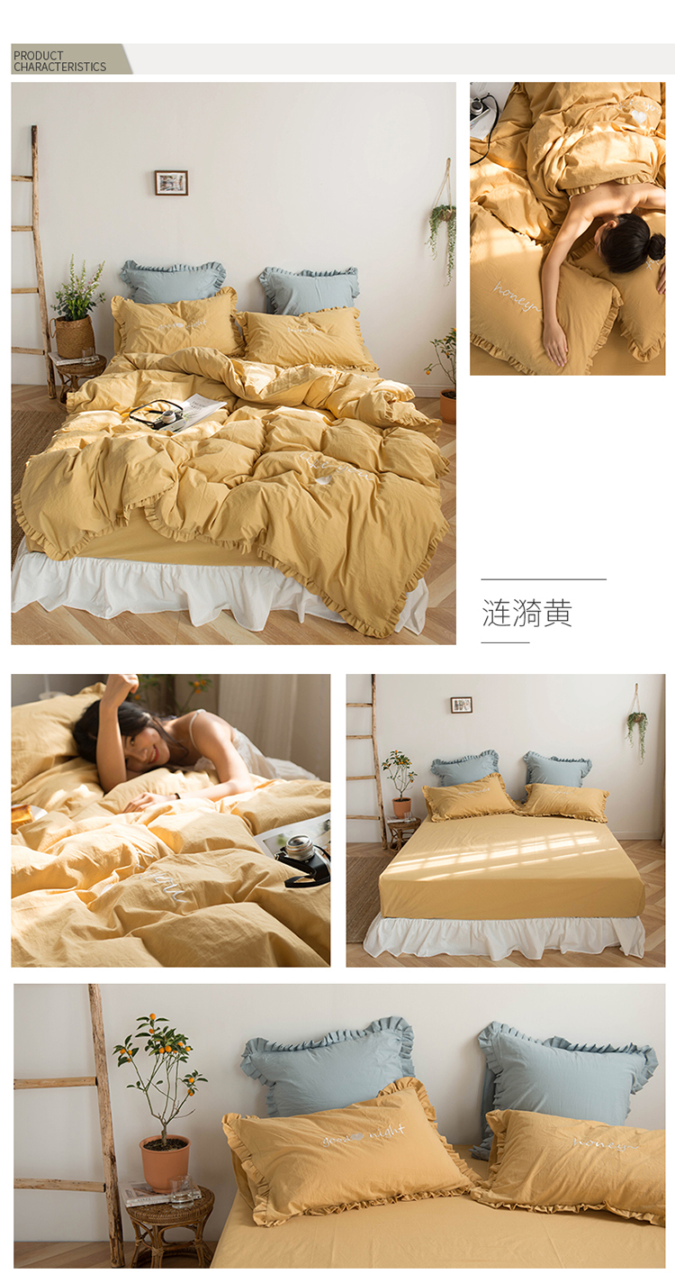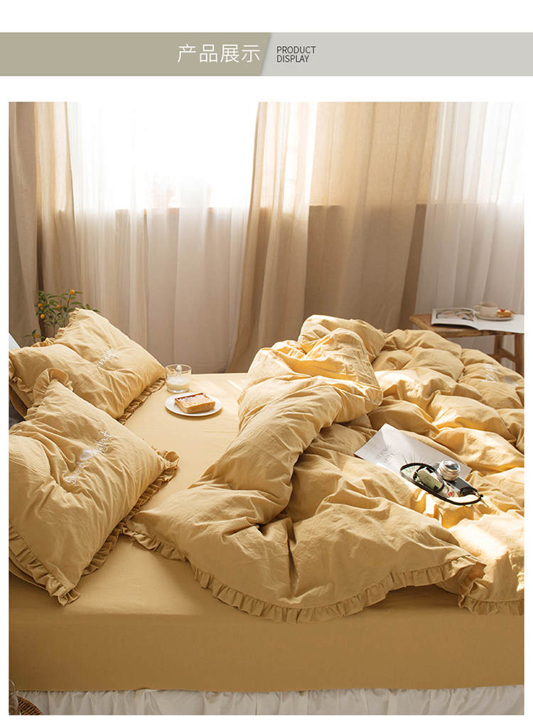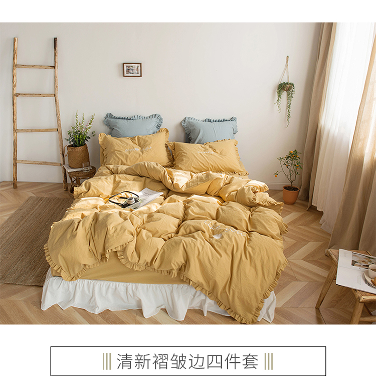 当前位置: 91家纺网 > 商品网购 > 床品套件 > 四件套 > 水洗棉四件套 > 北纬27度 2019新款摆荷边水洗棉四件套(床单款)涟漪黄