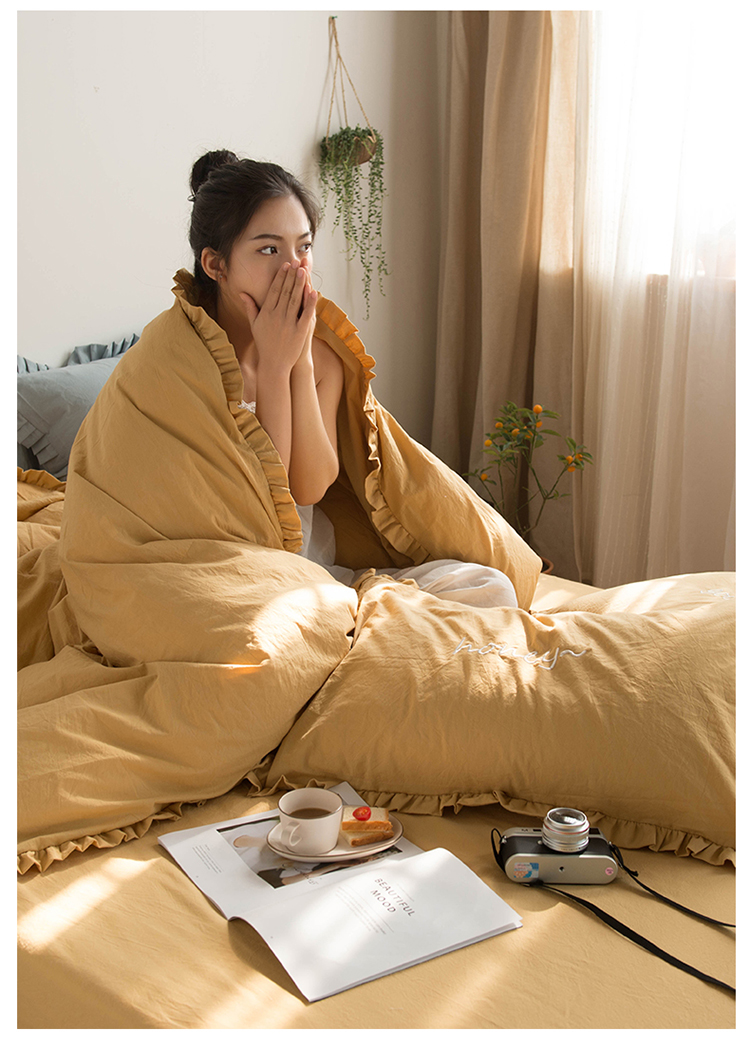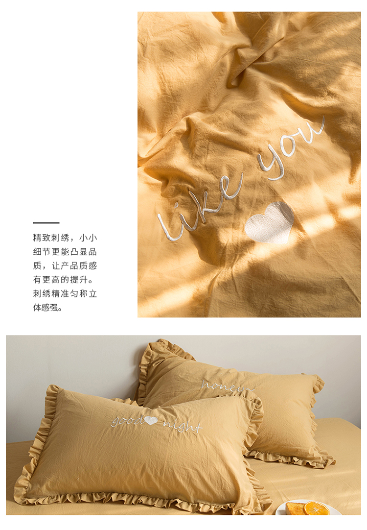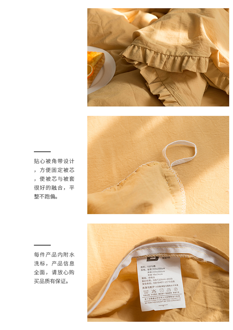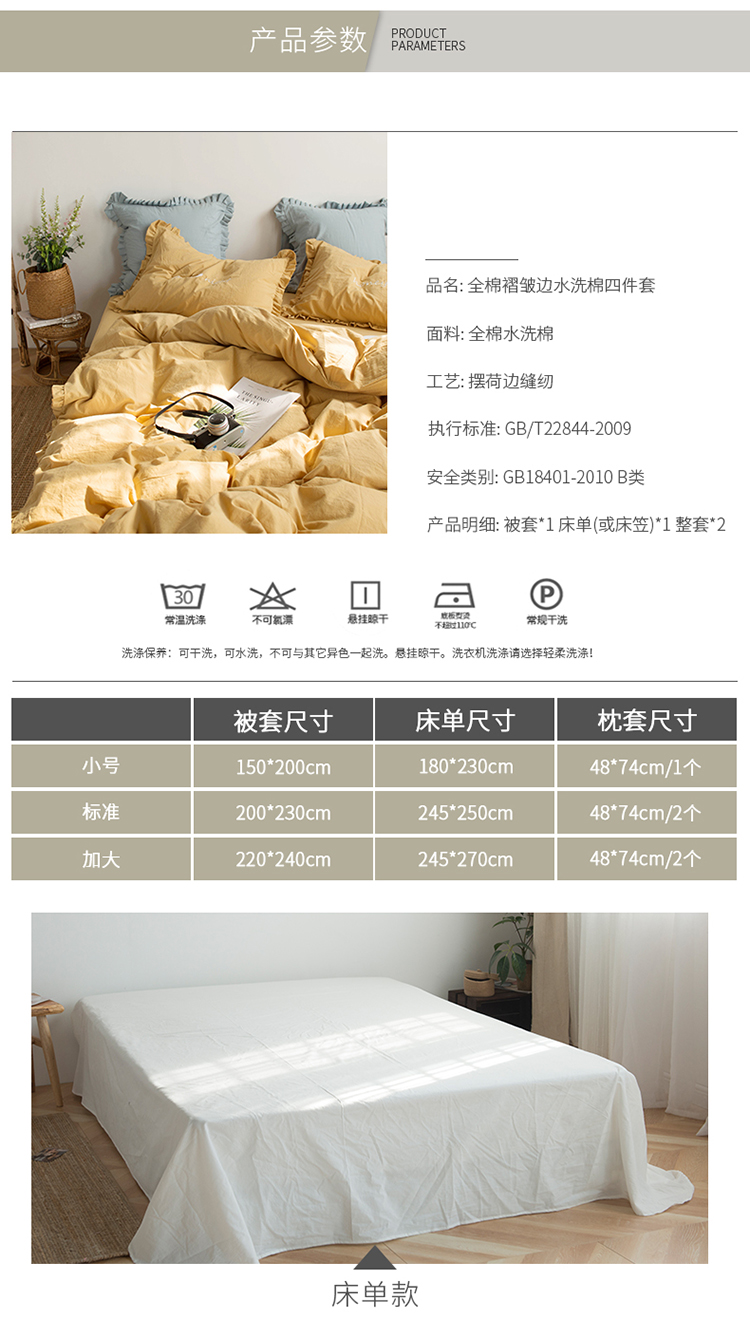 当前位置: 91家纺网 > 商品网购 > 床品套件 > 四件套 > 水洗棉四件套 > 北纬27度 2019新款摆荷边水洗棉四件套(床单款)涟漪黄