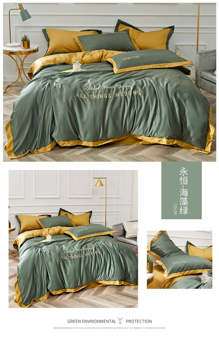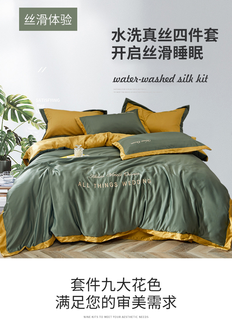 优悦生活馆 2019新款永恒水洗真丝四件套 永恒-海藻绿
