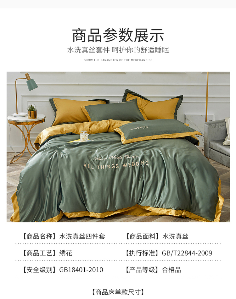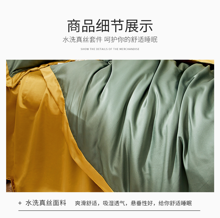 商品名称:优悦生活馆 2019新款永恒水洗真丝四件套 永恒-海藻绿
