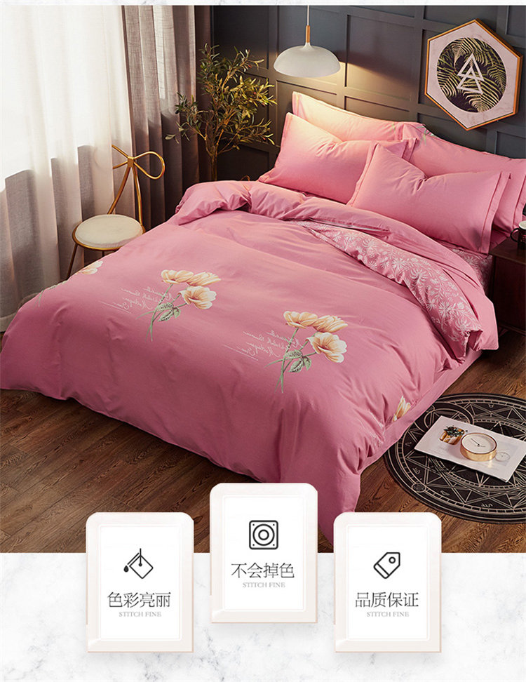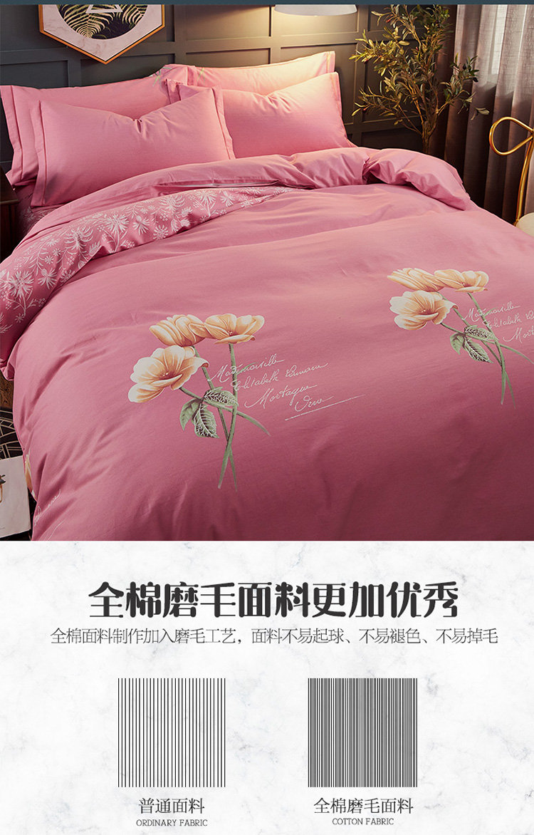 商品名称:雲归梦 2019新款多规格全棉加厚生态磨毛四件套 花开半夏-红