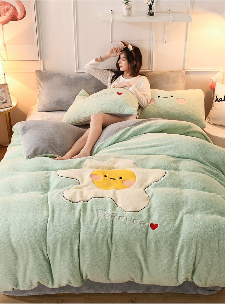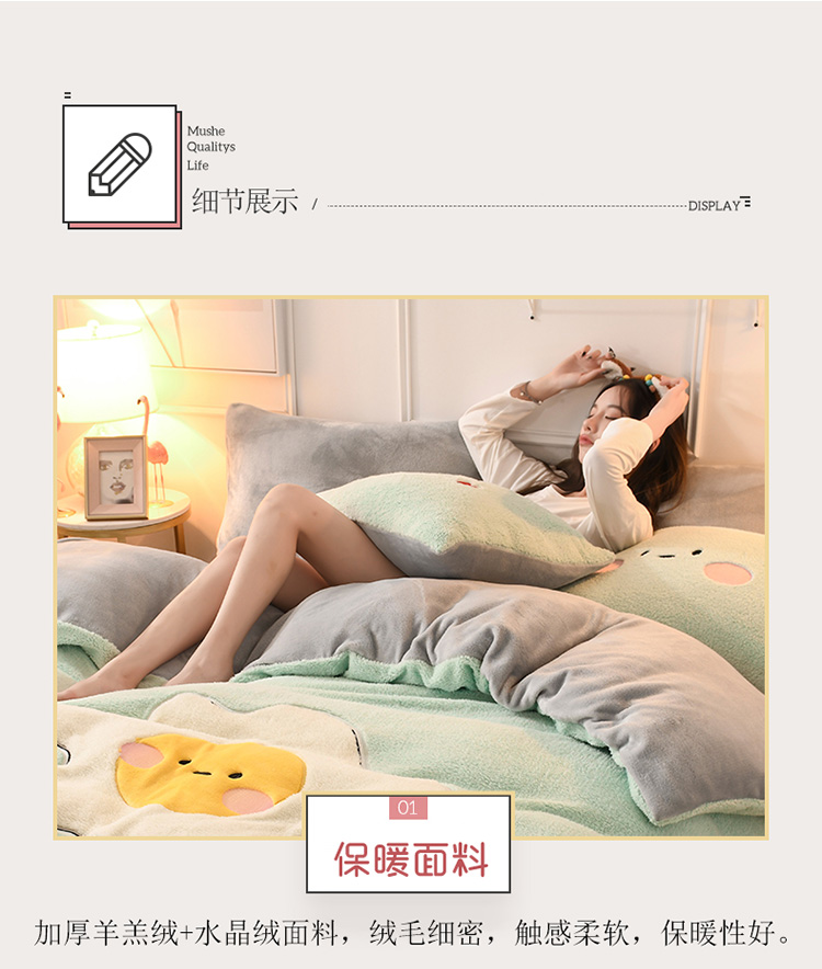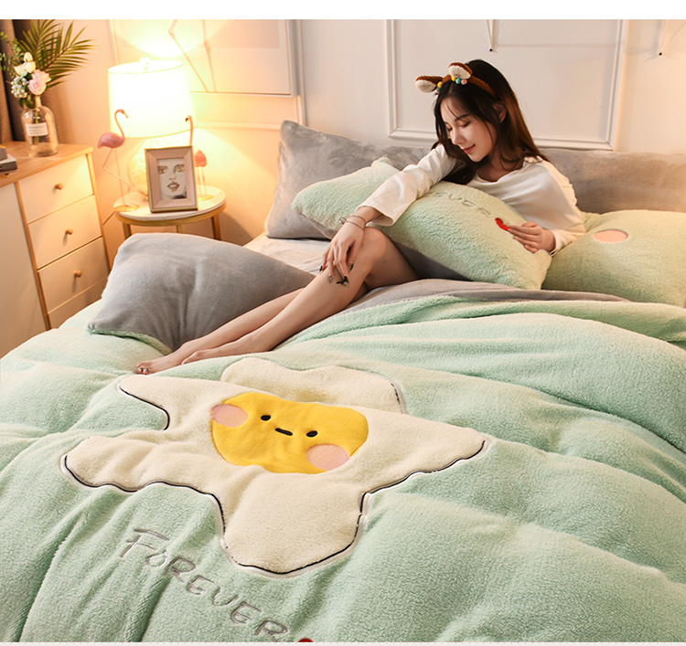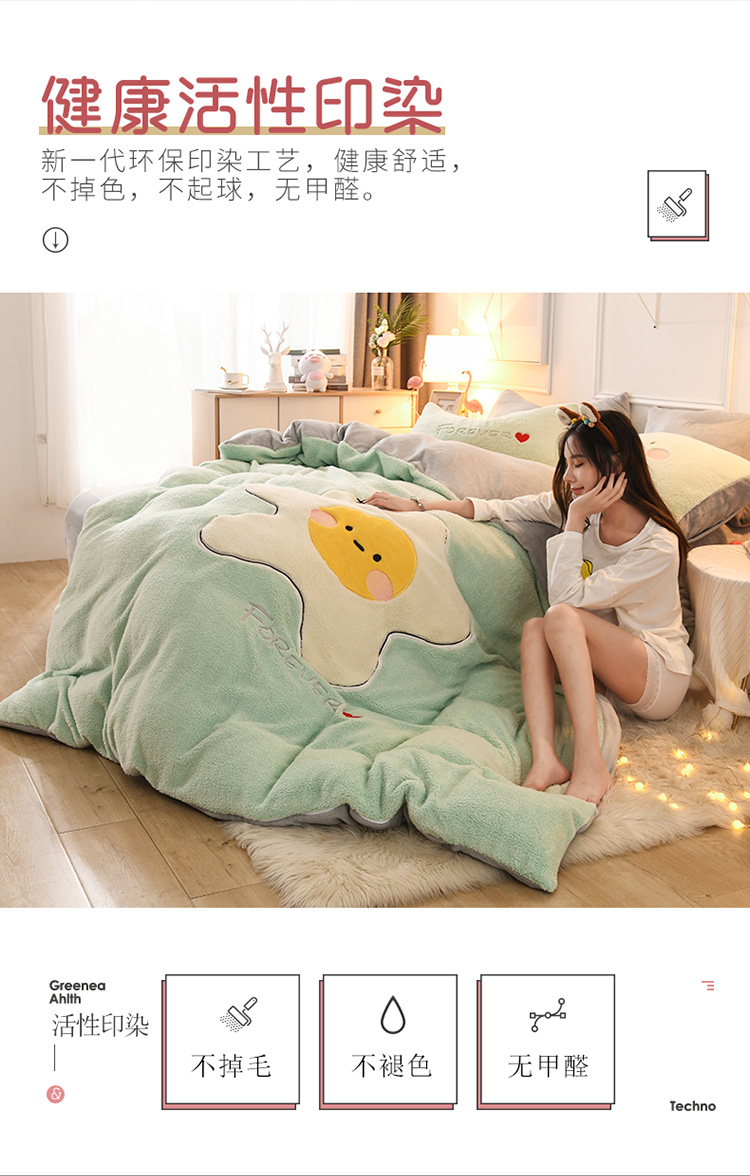 (总)朗莎家纺 2019新款羊羔绒贴布绣四件套,彩虹精灵,菠萝玉色,草莓奶白,独角兽抹茶绿,好色龙银灰,荷包蛋姜黄,荷包蛋抹茶绿,柠檬抹茶绿,柠檬墨绿,牛油果抹茶绿,圣诞鹿豆沙,小鸡藏青,小鸡午夜蓝,小鸡银灰