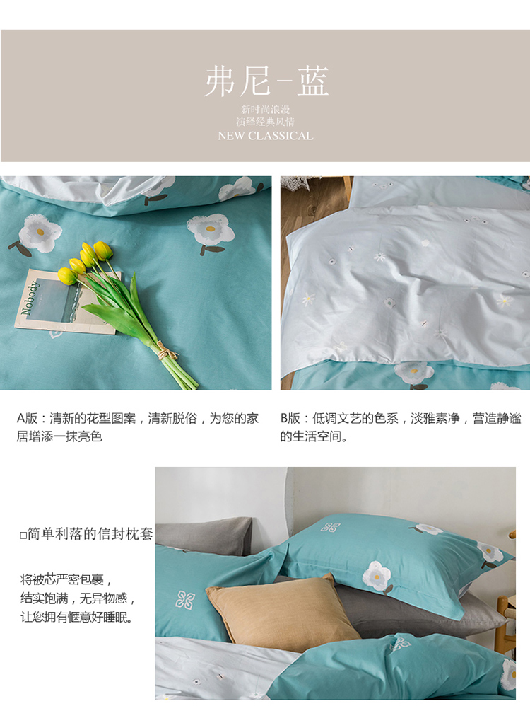 商品名称:窝米 2020春夏新品花卉风系列四件套 弗尼-蓝