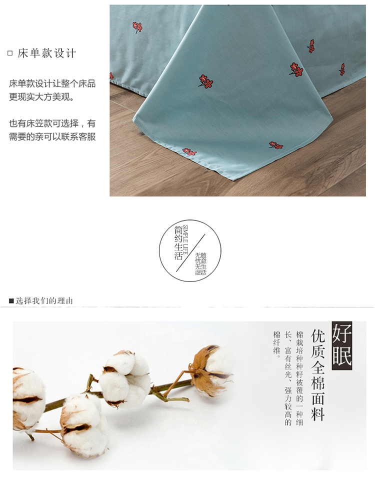 窝米 2020春夏新品全棉13372四件套小波西风系列小花花,小花花