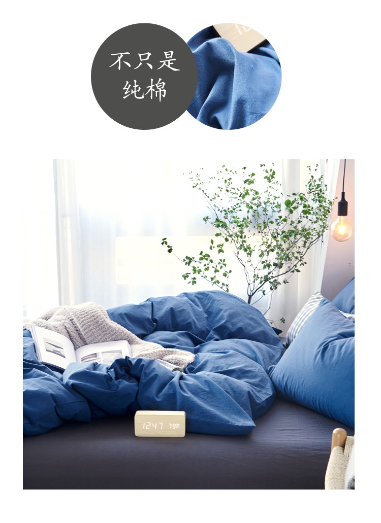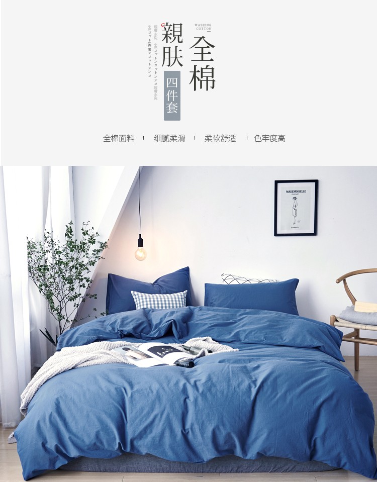 北欧风ins纯棉水洗棉床四件套全棉简约被套床单上三件套床笠,白色+藏青,藏青+浅蓝,鹅黄+螺旋藻绿,鹅黄+牛油果,螺旋藻绿+鹅黄,千夏紫+水貂灰,千夏紫+薇薇紫,薇薇紫+浅灰,浅蓝+鹅黄,浅蓝+白色,浅蓝+藏青