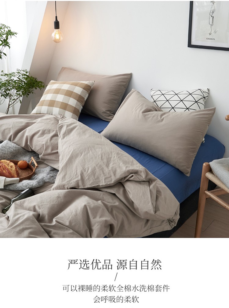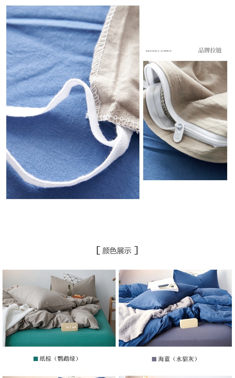 北欧风ins纯棉水洗棉床四件套全棉简约被套床单上三件套床笠,白色+藏青,藏青+浅蓝,鹅黄+螺旋藻绿,鹅黄+牛油果,螺旋藻绿+鹅黄,千夏紫+水貂灰,千夏紫+薇薇紫,薇薇紫+浅灰,浅蓝+鹅黄,浅蓝+白色,浅蓝+藏青