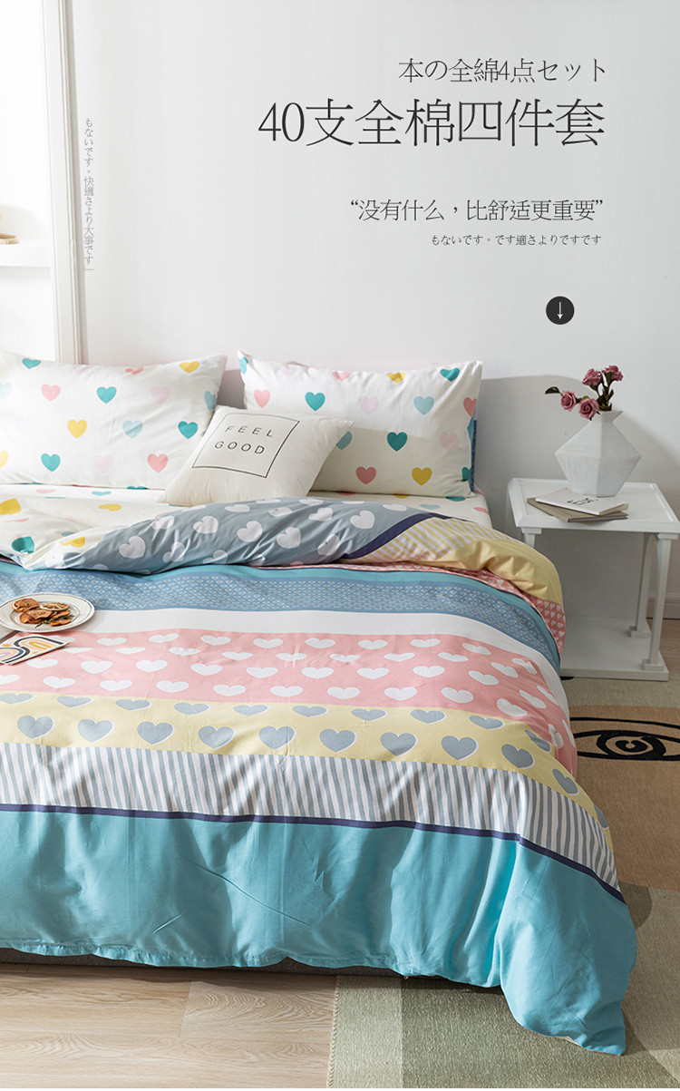 (总)2023新款40支纱全棉13070锁边工艺款四件套系列,格子爱心,嘉兰,咖条,朗尼,小兔兔,星星兔