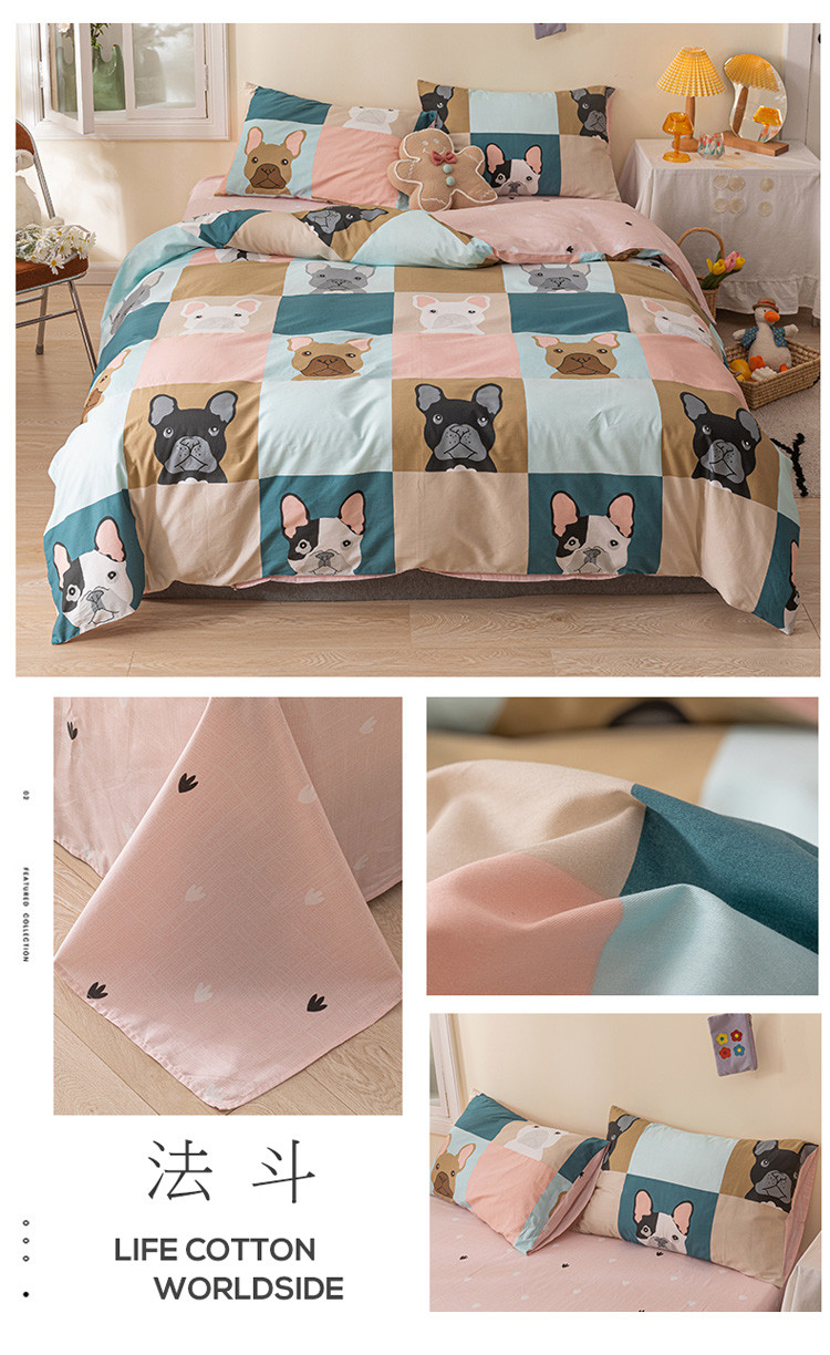 (总)珺柔家纺 2025新款全棉双层纱印花四件套,粉豹纹,焦糖小曲奇,礼物女孩,猫狗日记,奶油星空,线条苹果猫,小飞象,小狗的家,樱桃,樱桃西高地