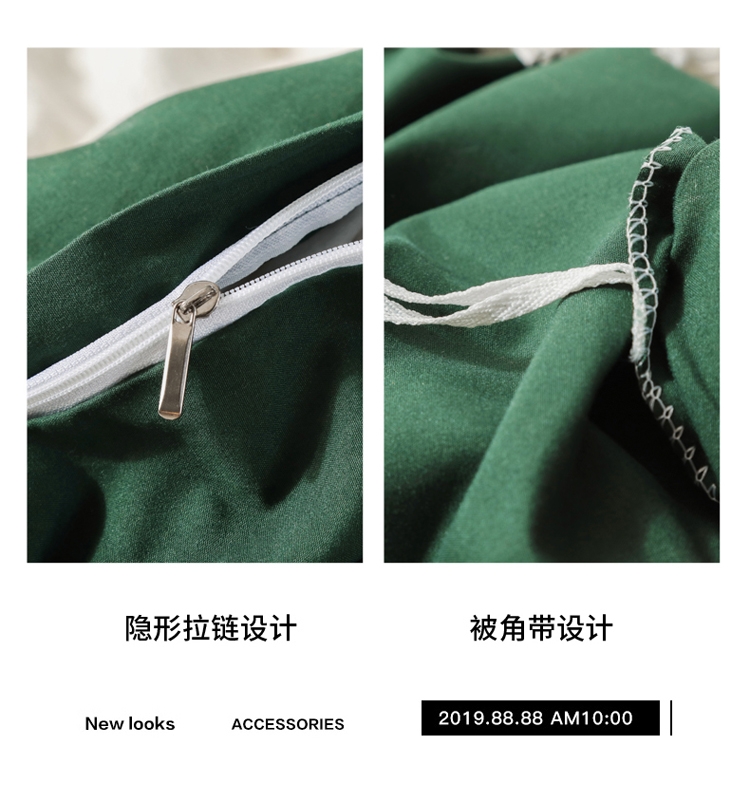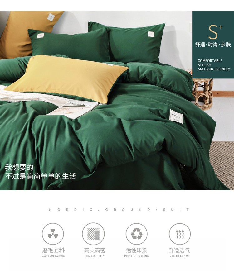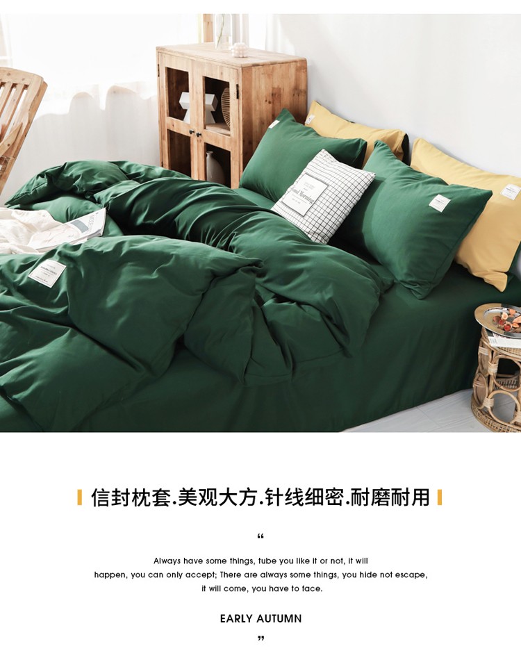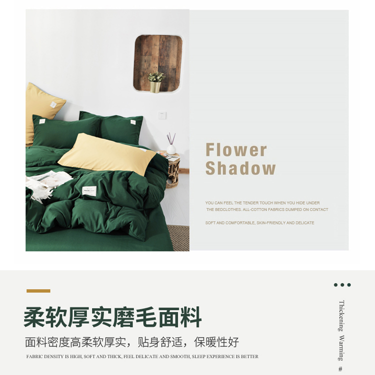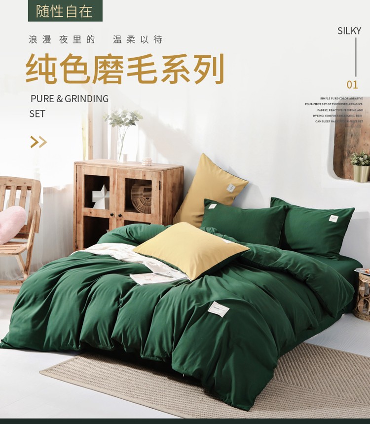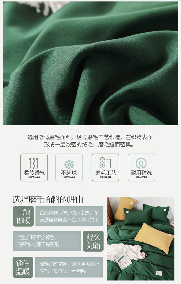商品名称:米粒 2020新款纯色磨毛四件套 墨绿