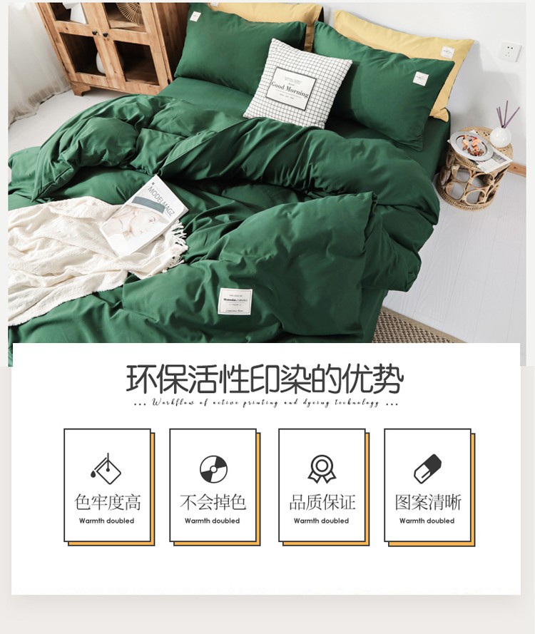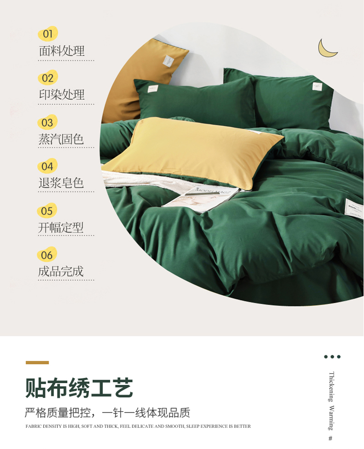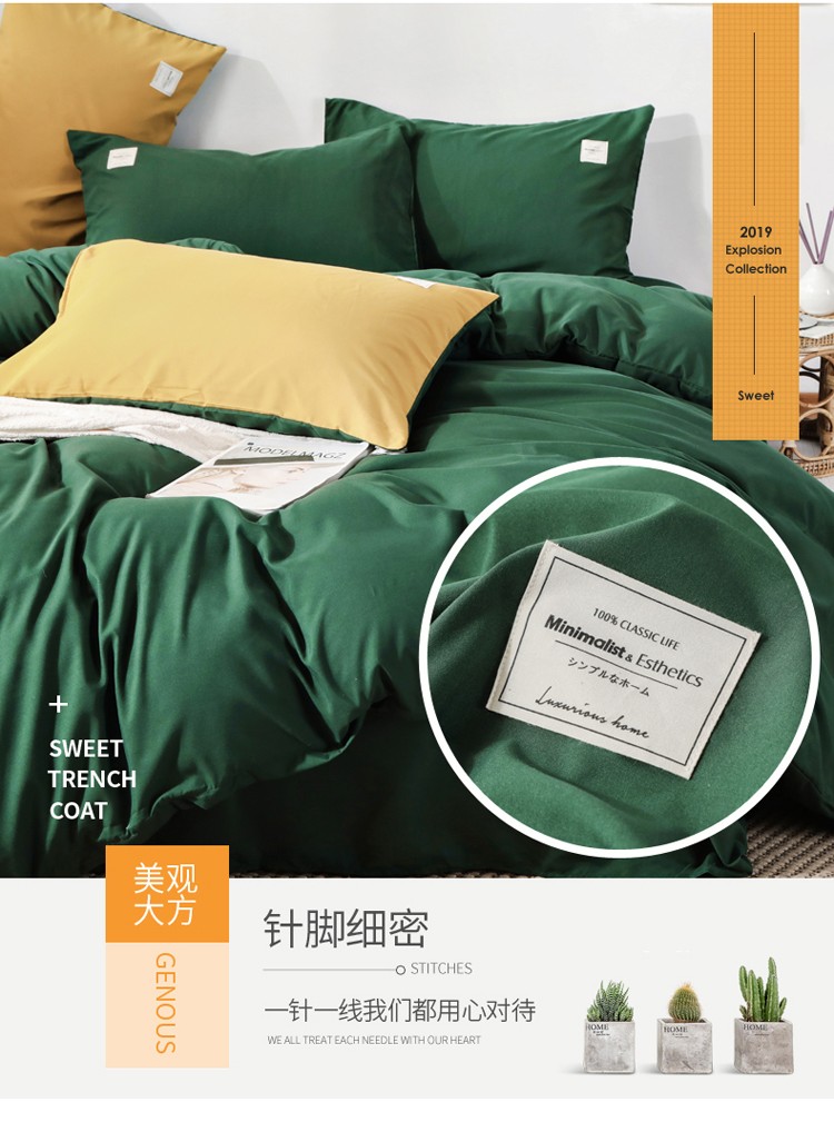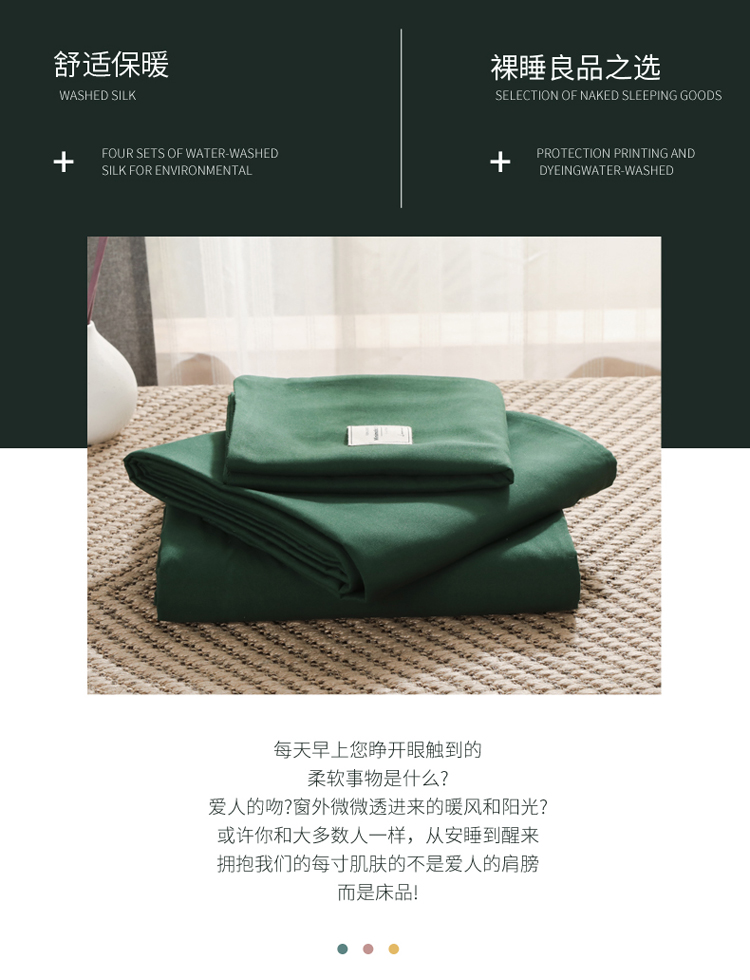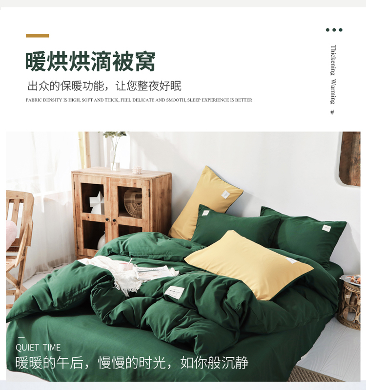 商品名称:米粒 2020新款纯色磨毛四件套 墨绿