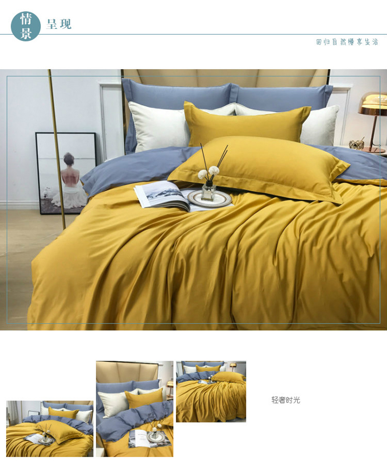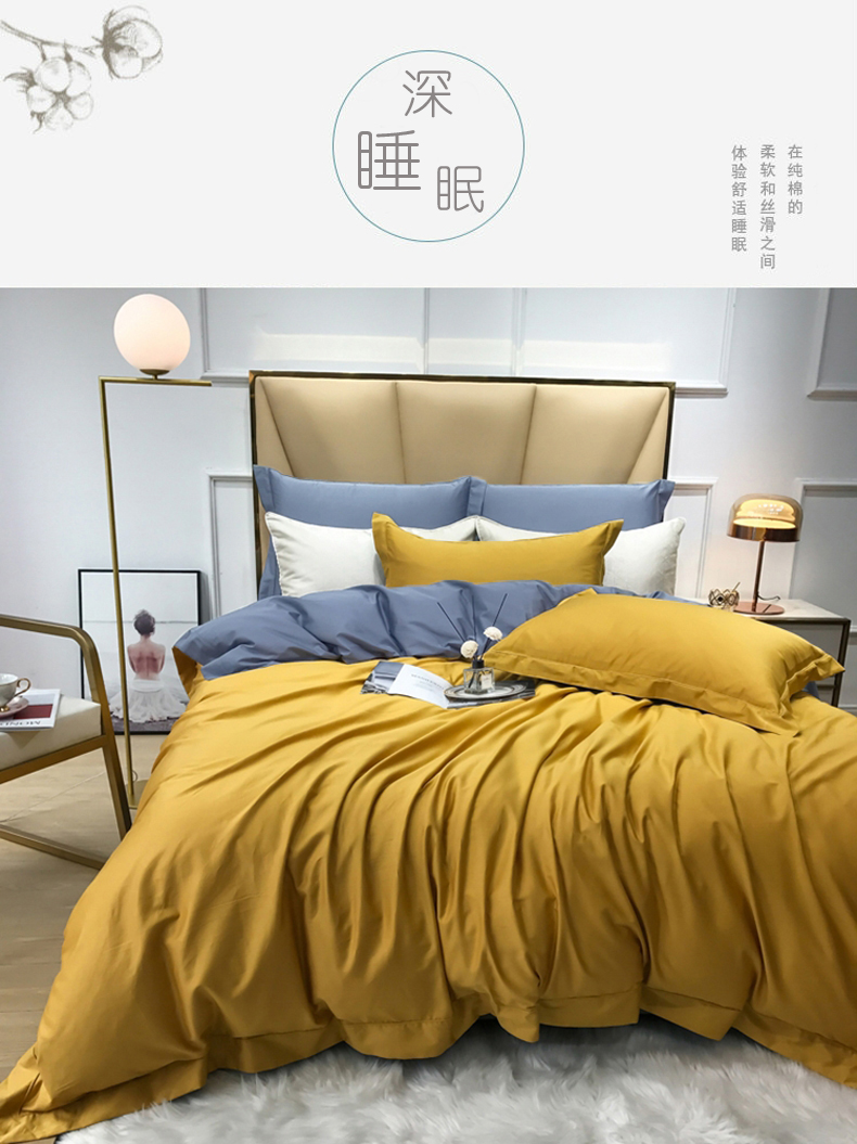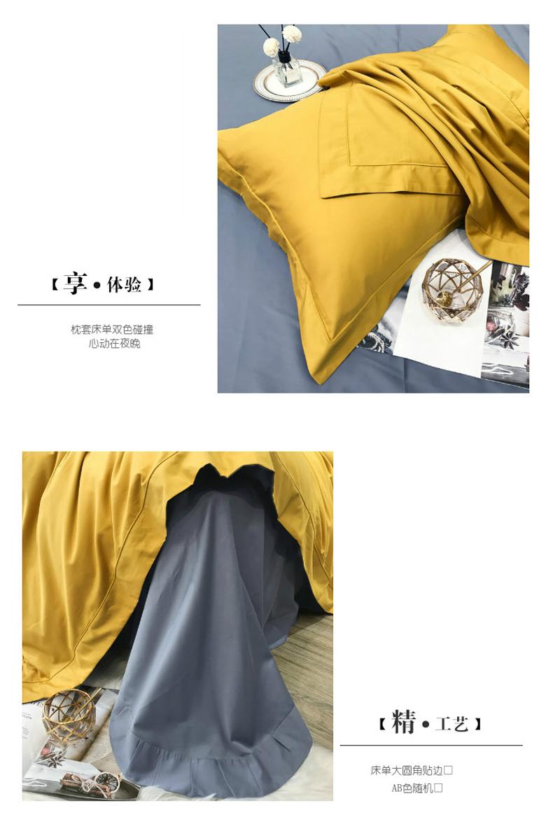 商品名称:(总)十九色家纺 新款50*50撞色长绒棉高端埋线款全棉四件套