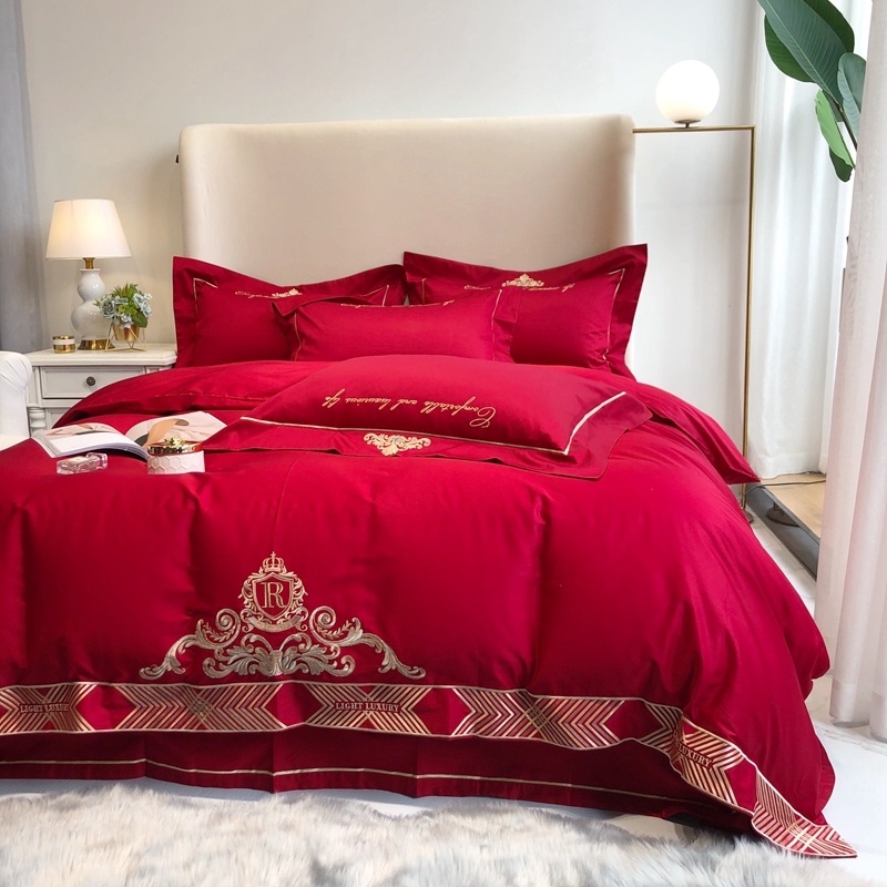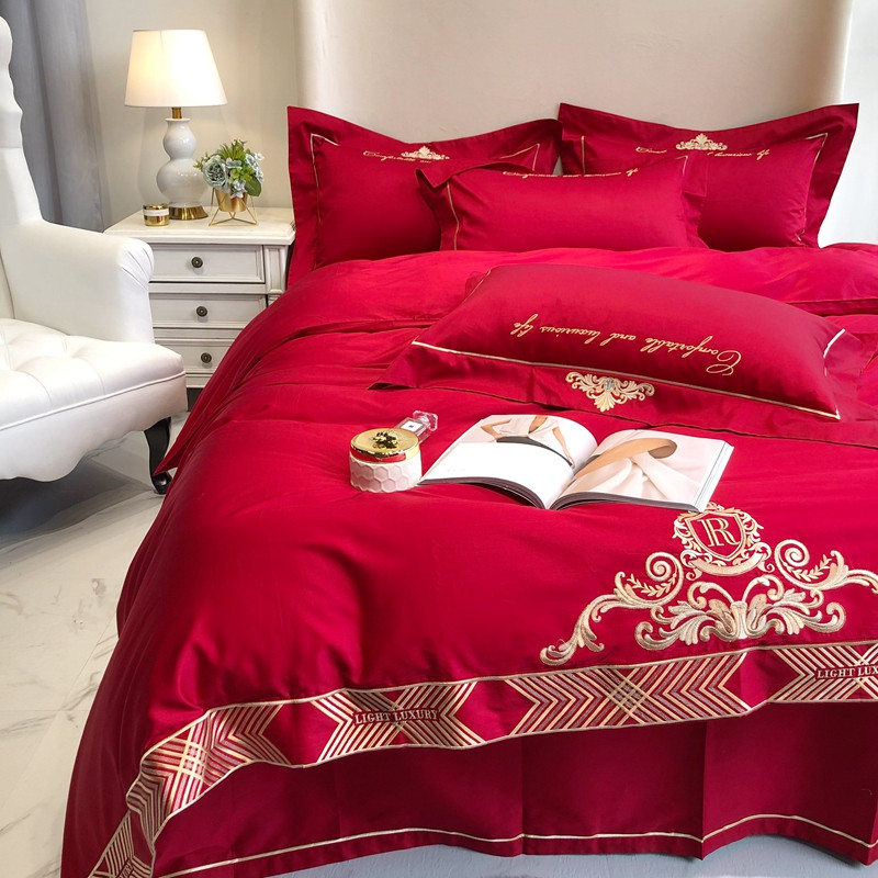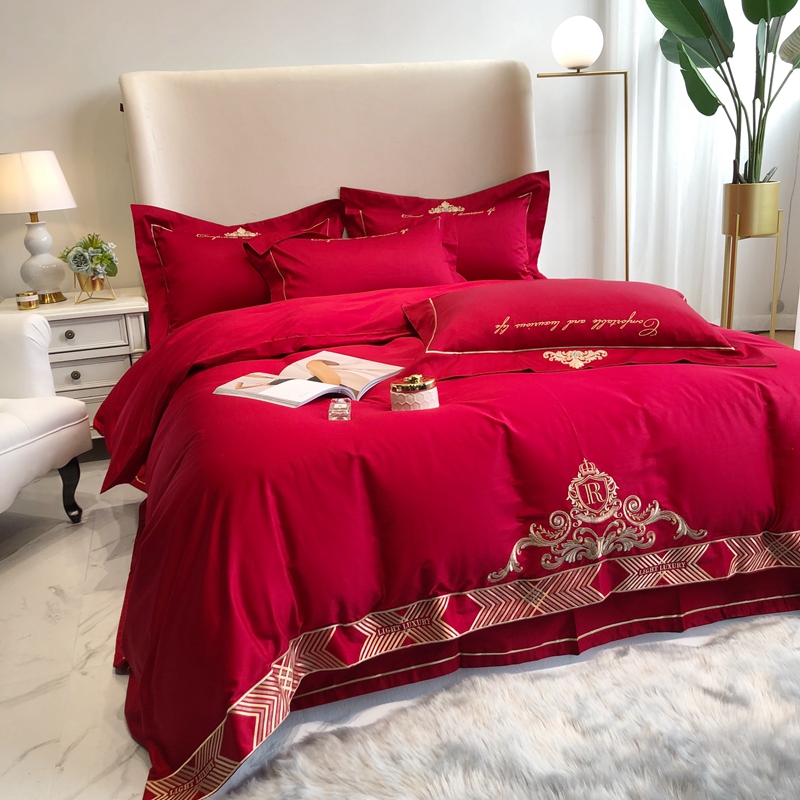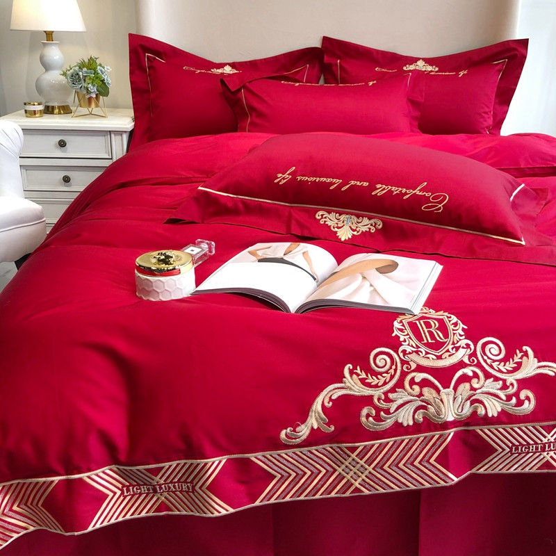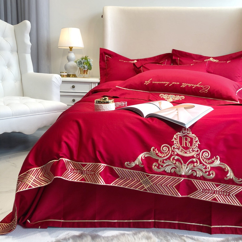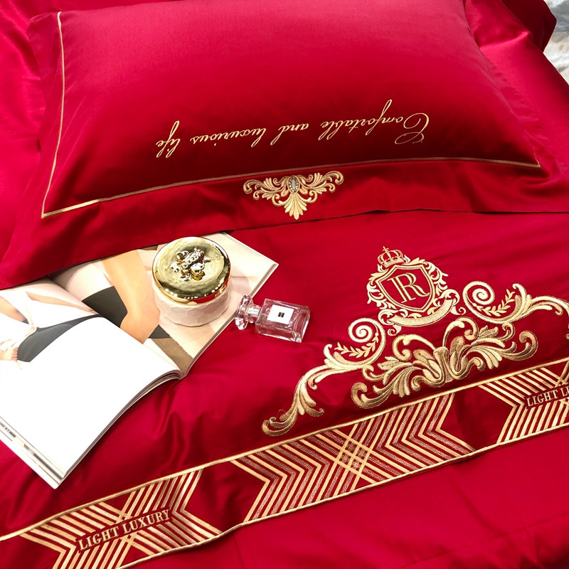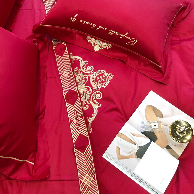 商品名称:馨蕊家居 202160s双股埃及长绒棉维尼亚系列四件套温莎红