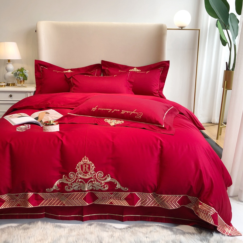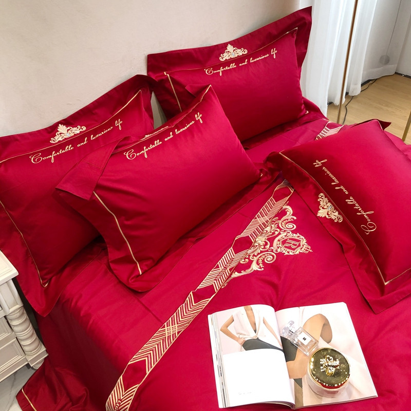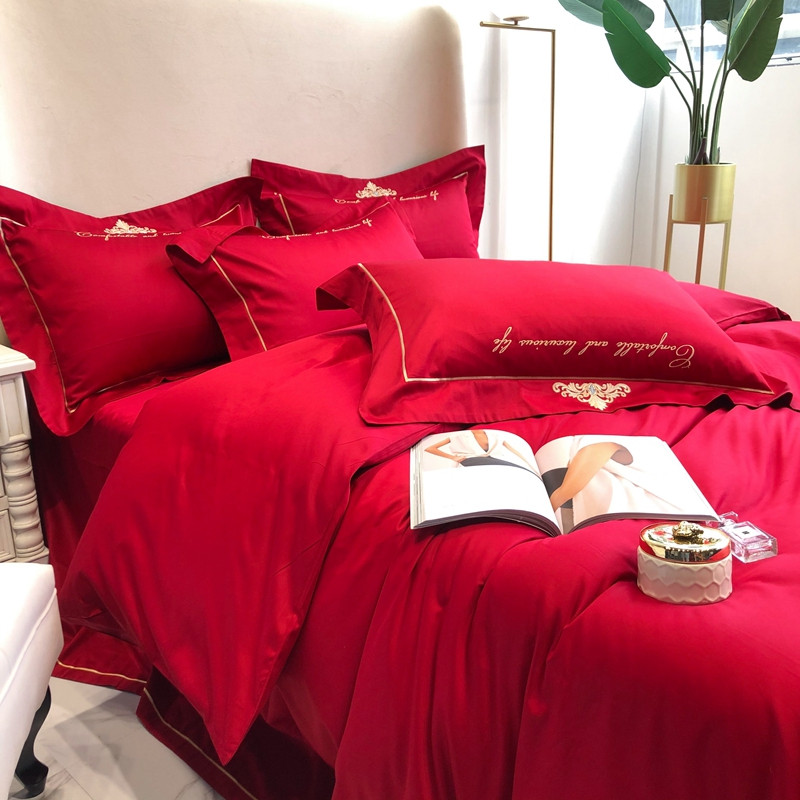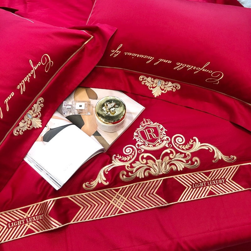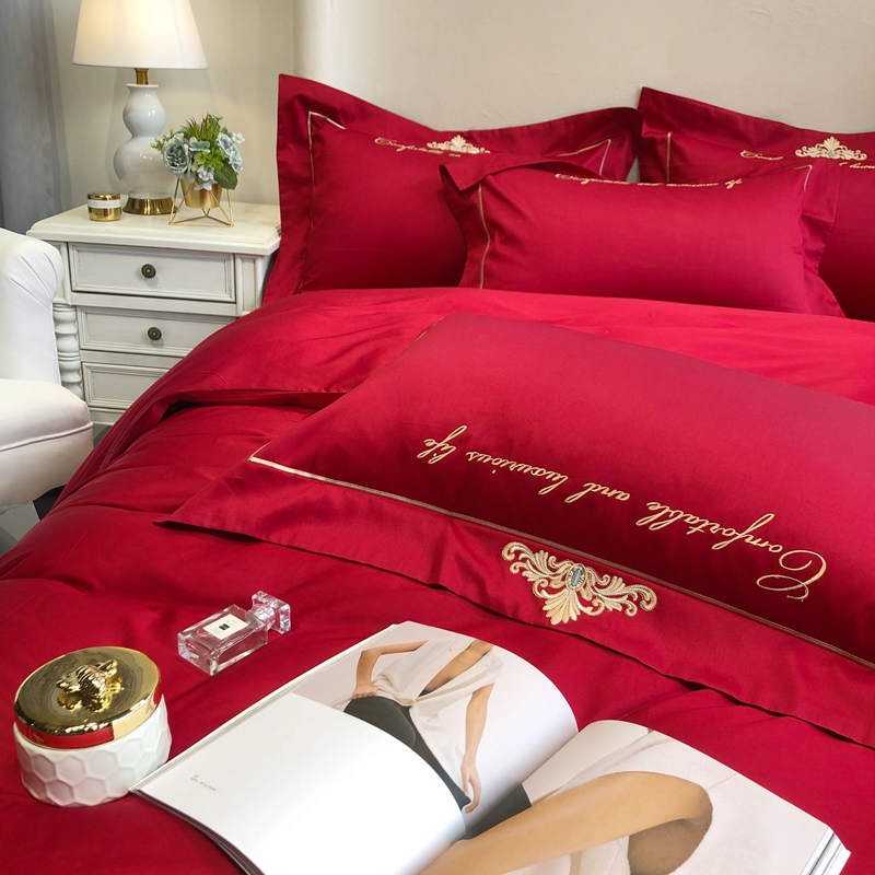 馨蕊家居 202160s双股埃及长绒棉维尼亚系列四件套温莎红