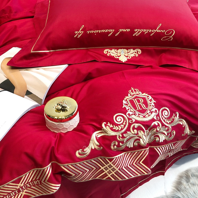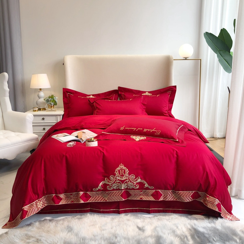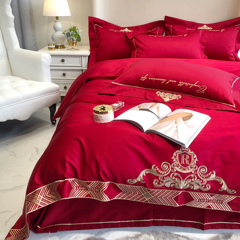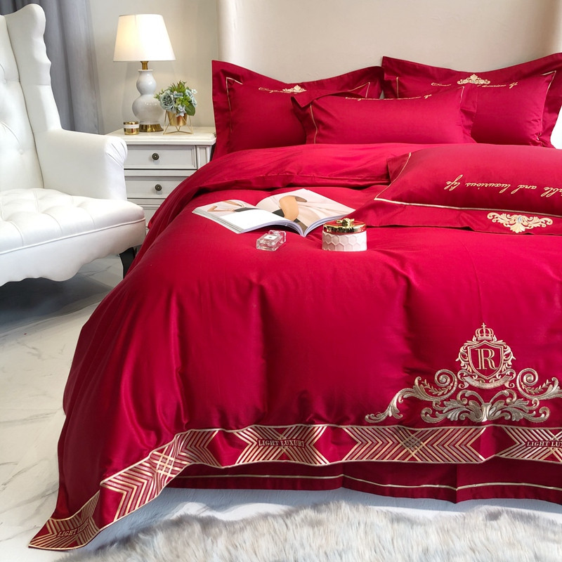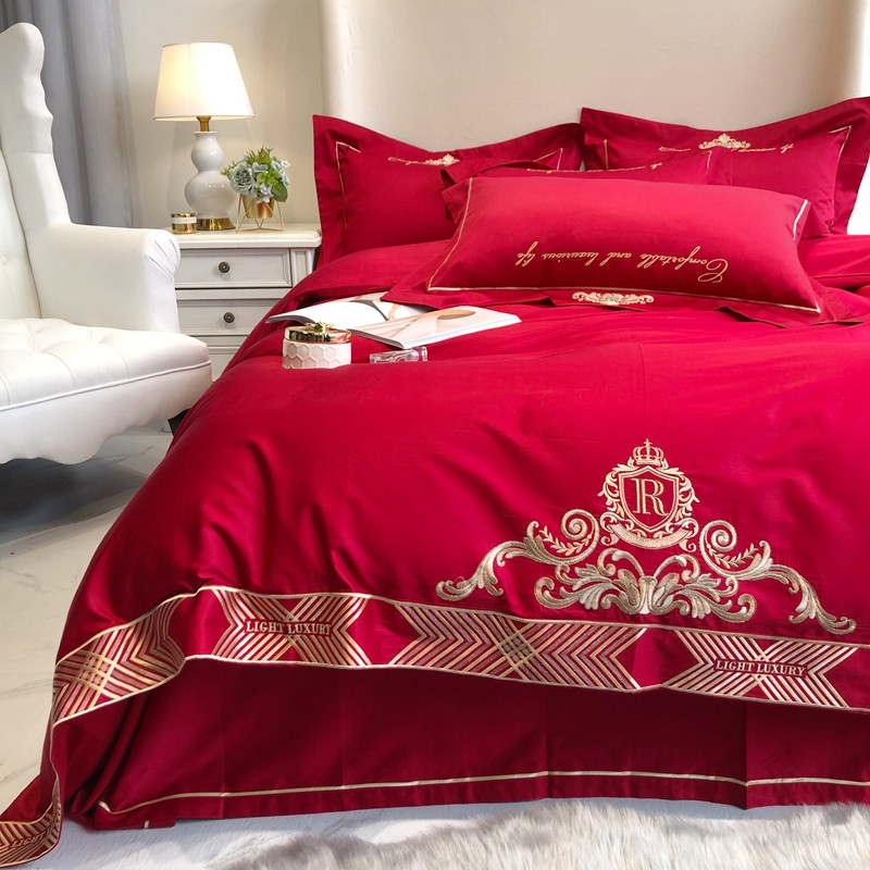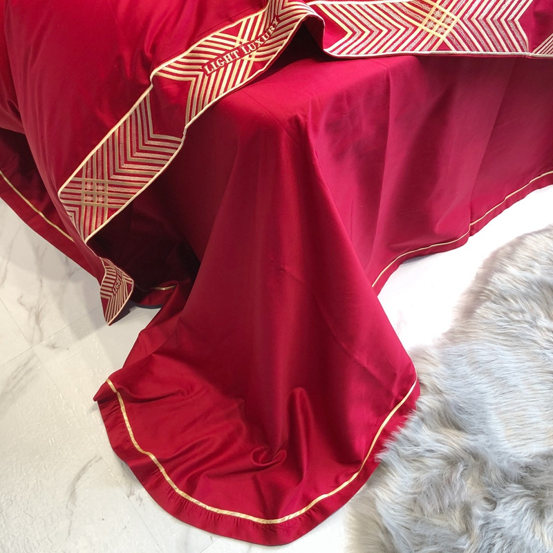 馨蕊家居 202160s双股埃及长绒棉维尼亚系列四件套温莎红