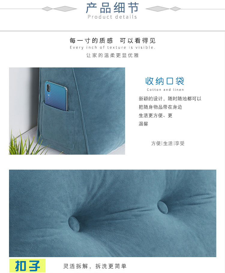 商品名称:厂家直销2020新款三角亲肤绒面料床头靠垫靠背床上靠枕榻榻米