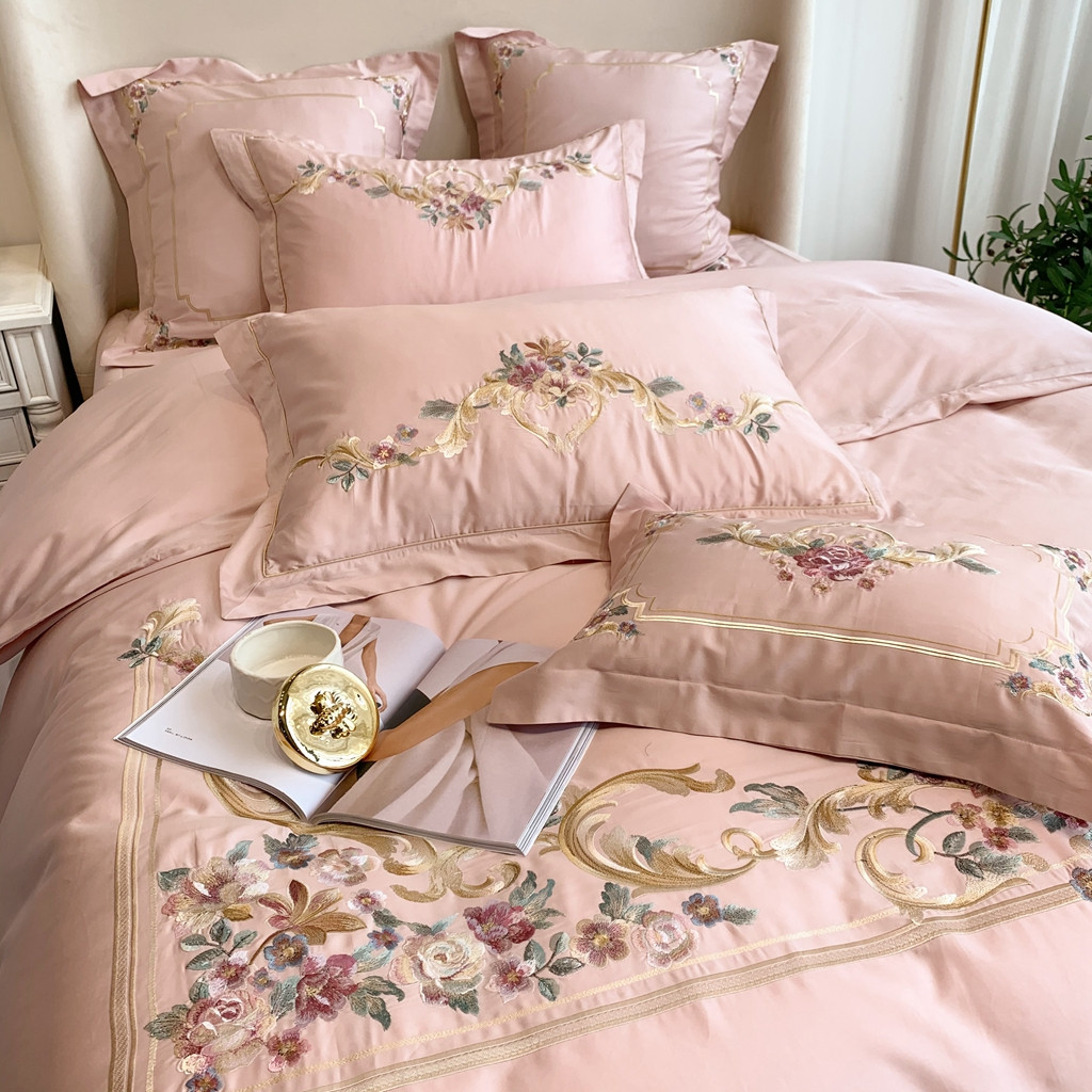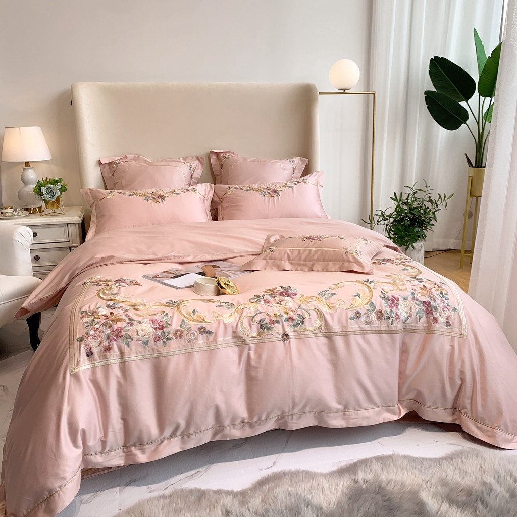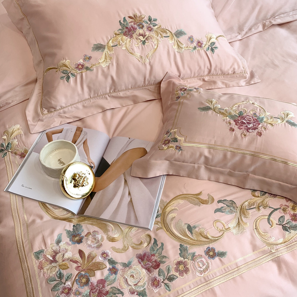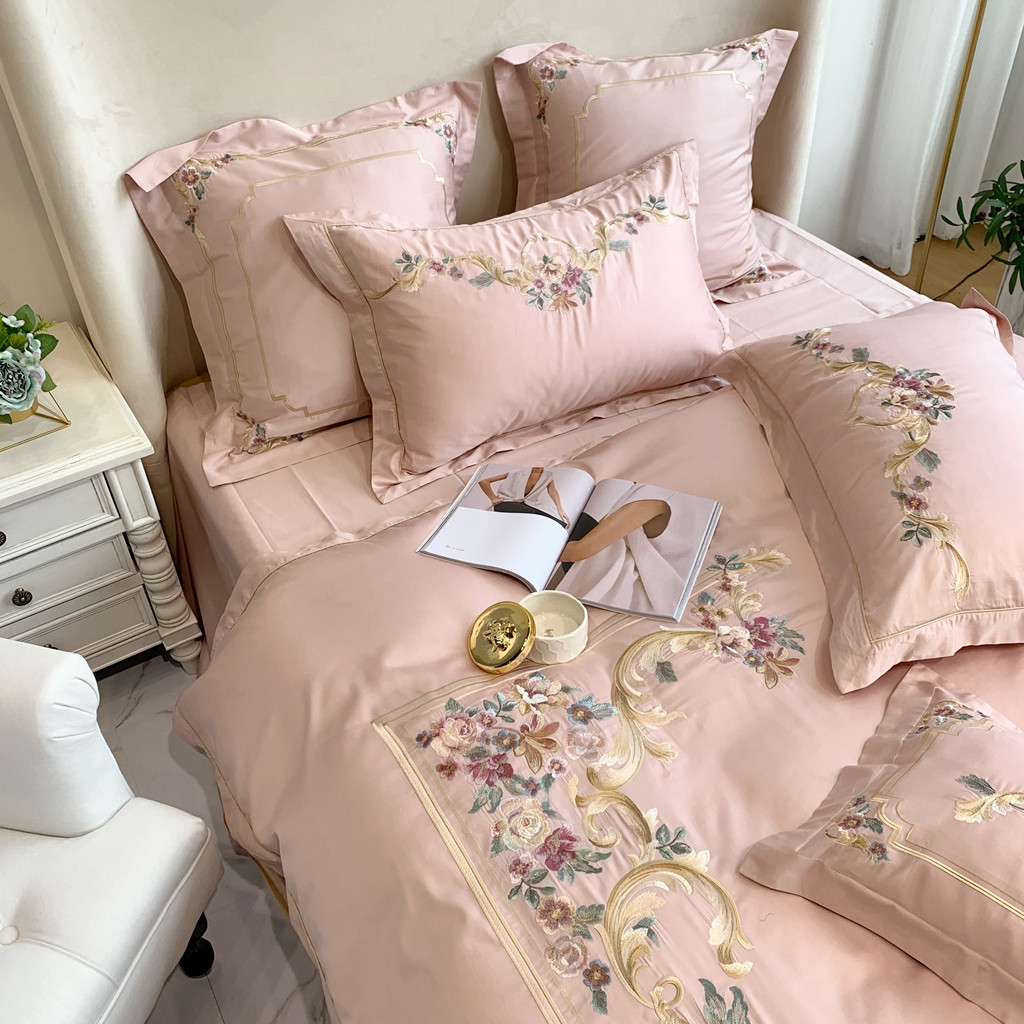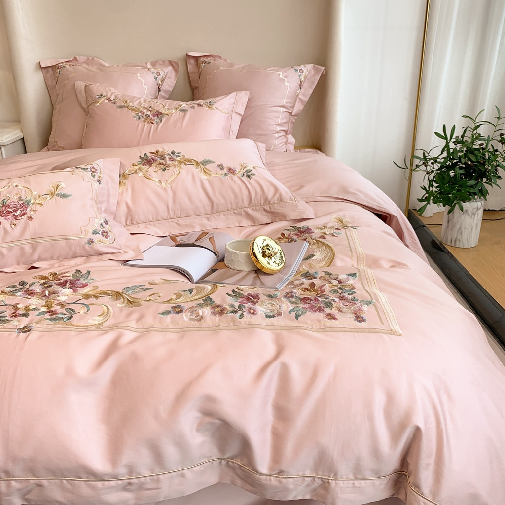 商品名称:馨蕊家居 2021秋冬新品60s长绒棉罗卡芙四件套罗卡芙粉色