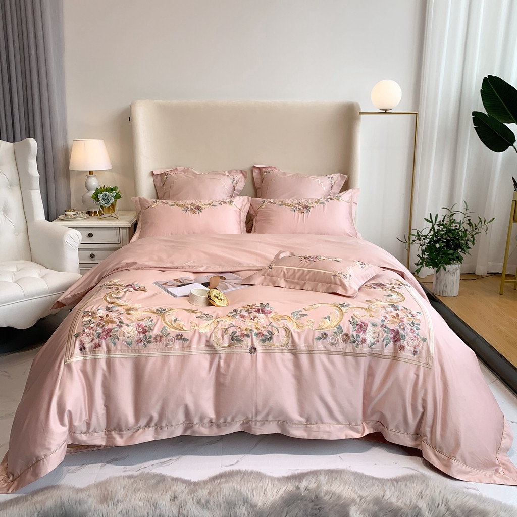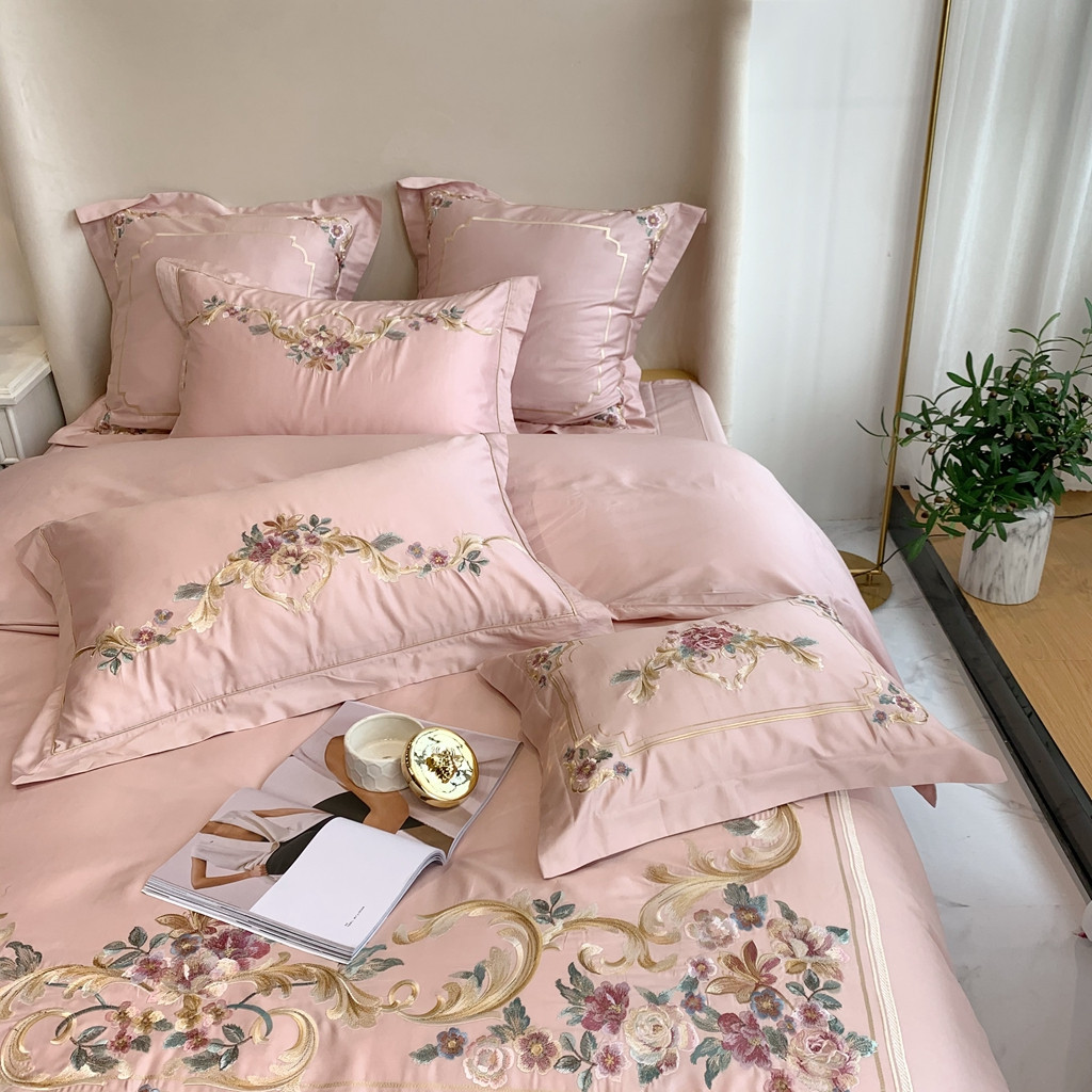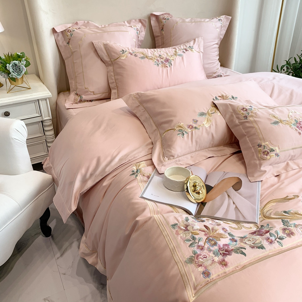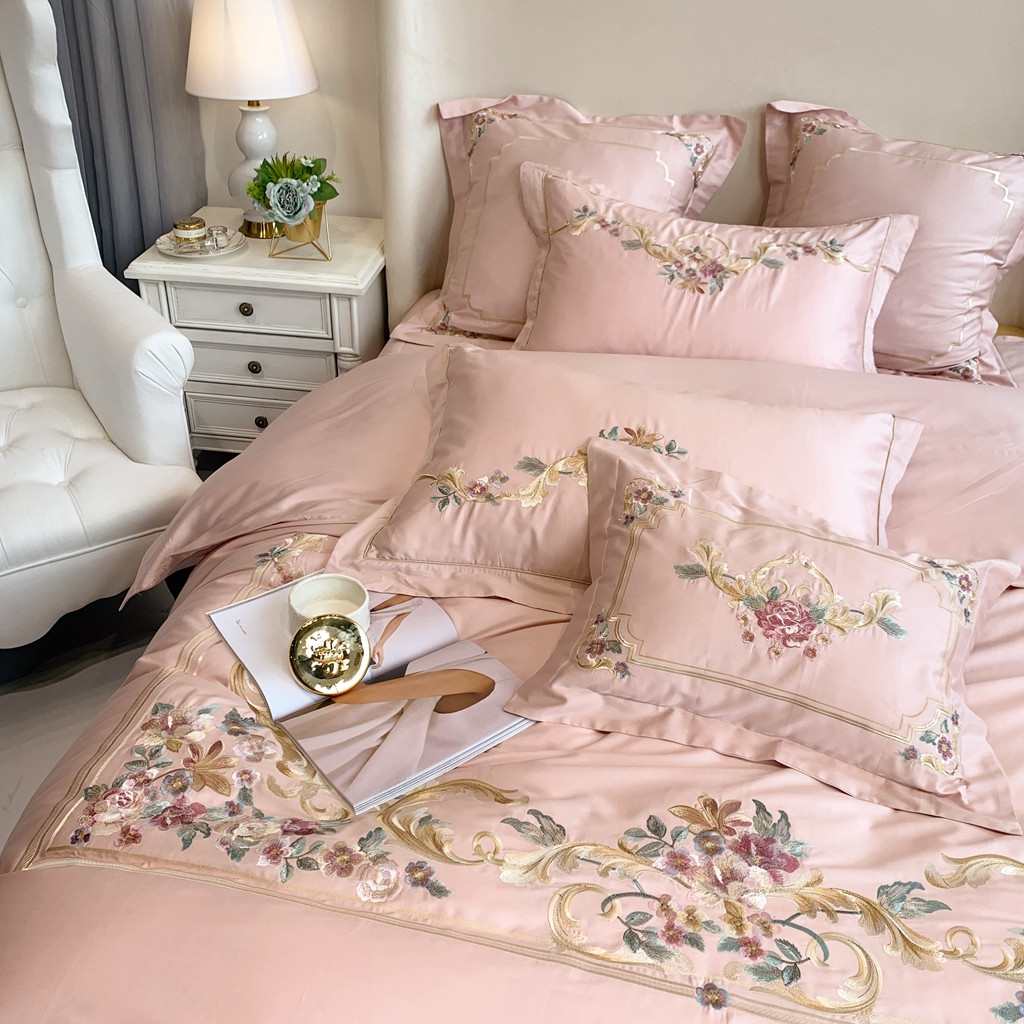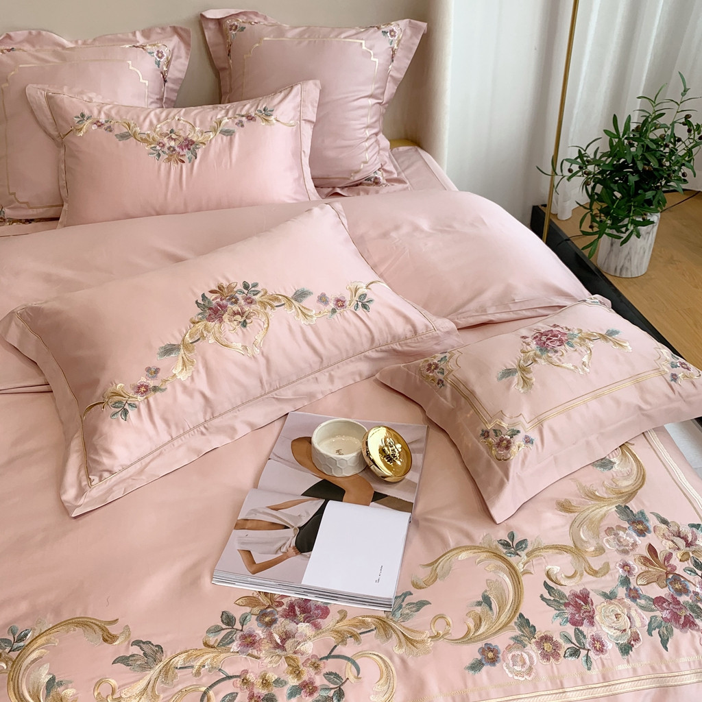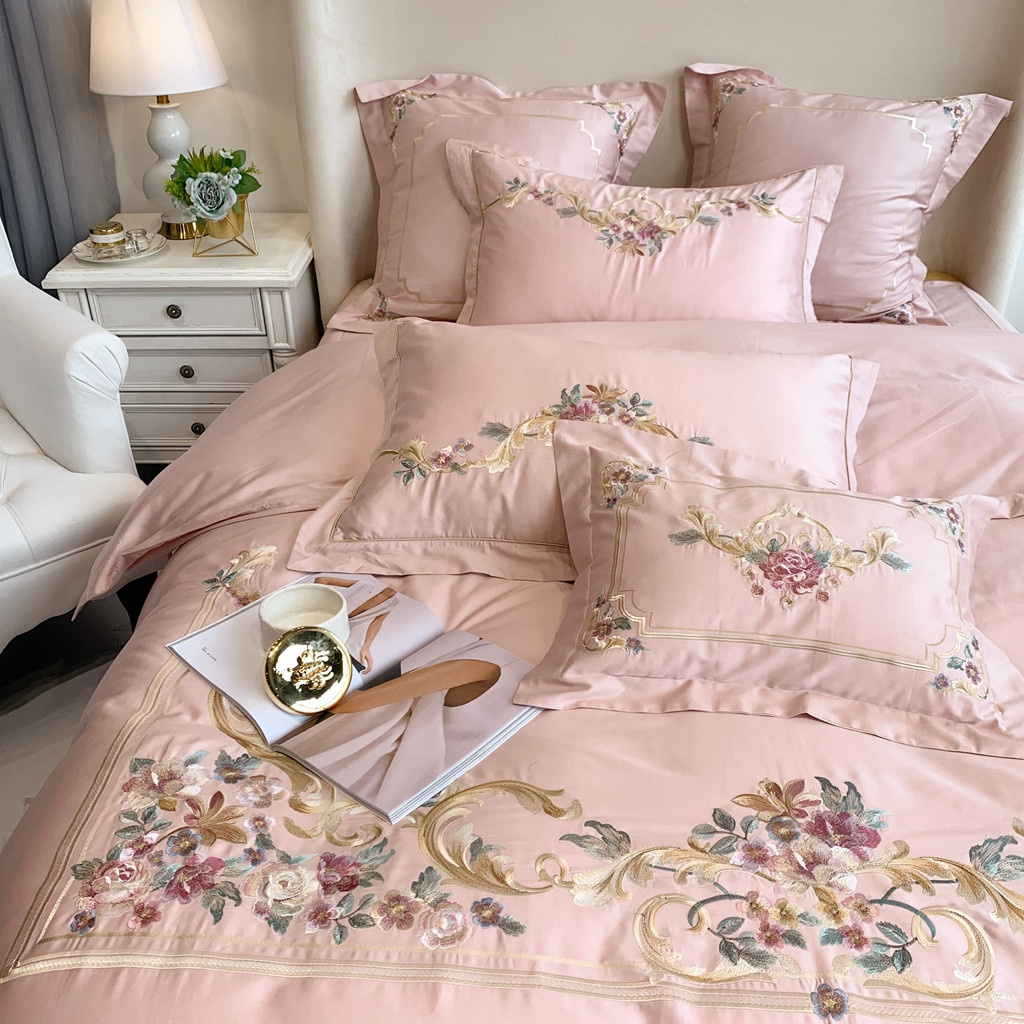 商品名称:馨蕊家居 2021秋冬新品60s长绒棉罗卡芙四件套罗卡芙粉色