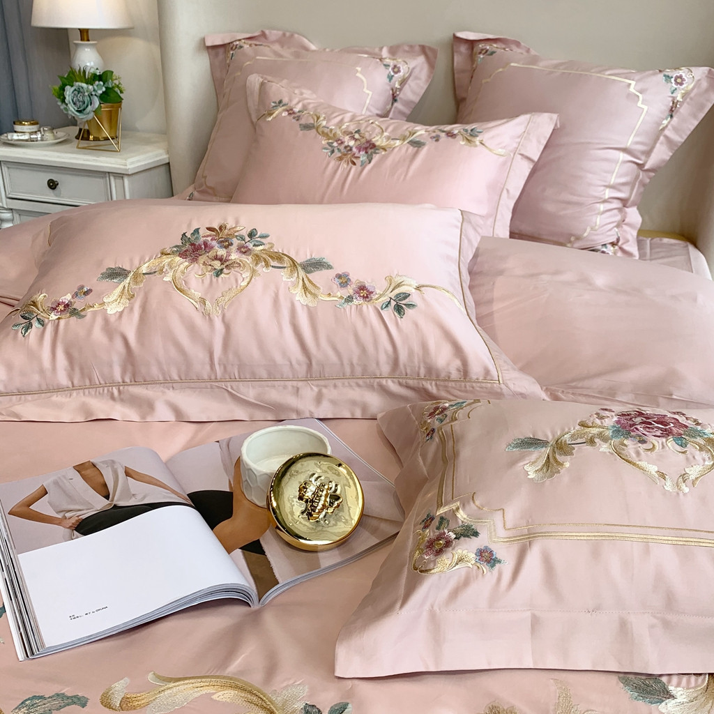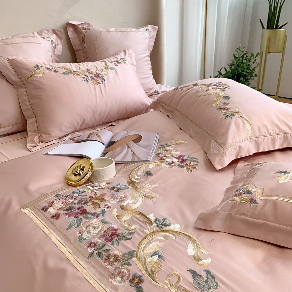 馨蕊家居 2021秋冬新品60s长绒棉罗卡芙四件套罗卡芙粉色